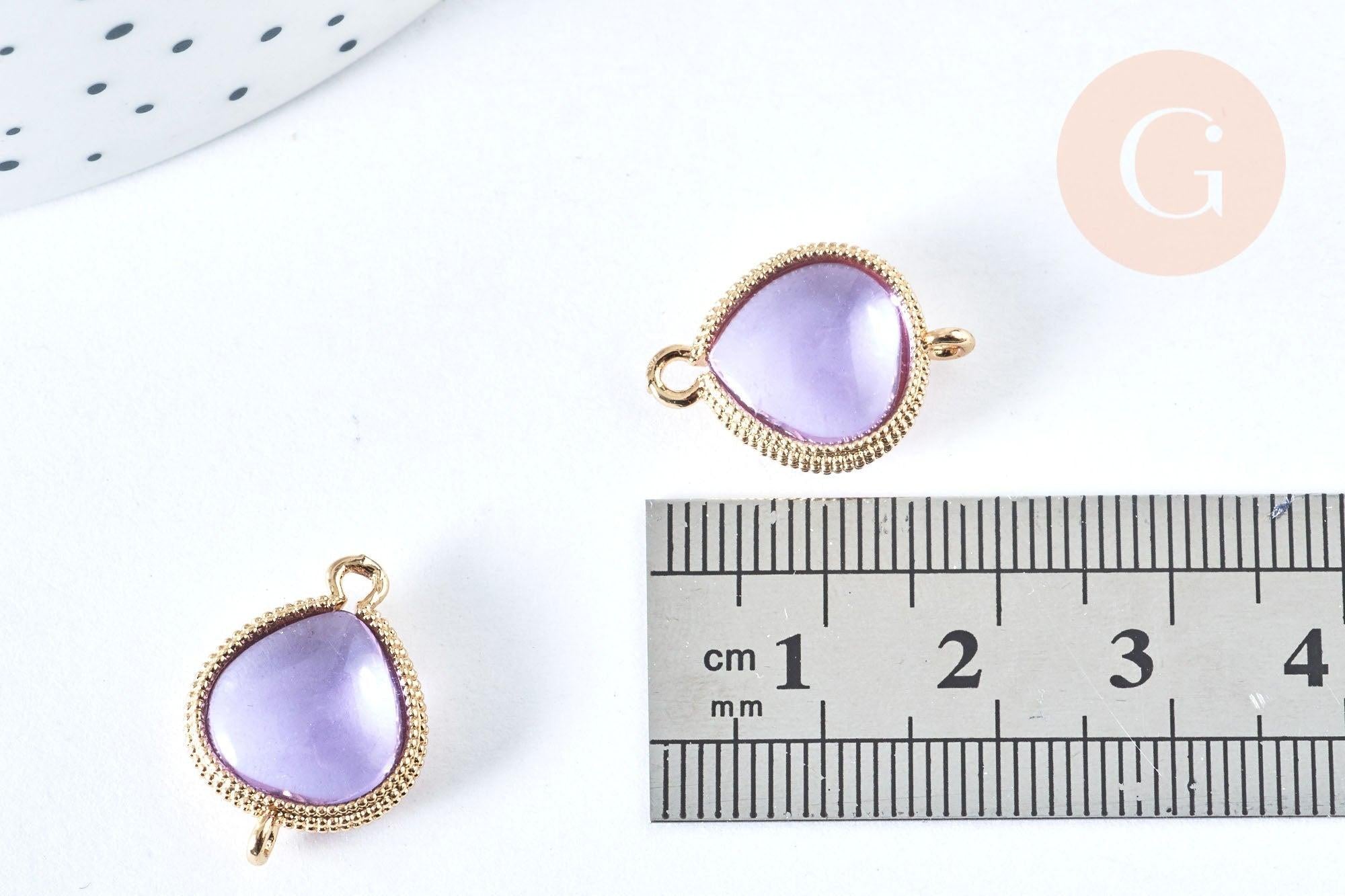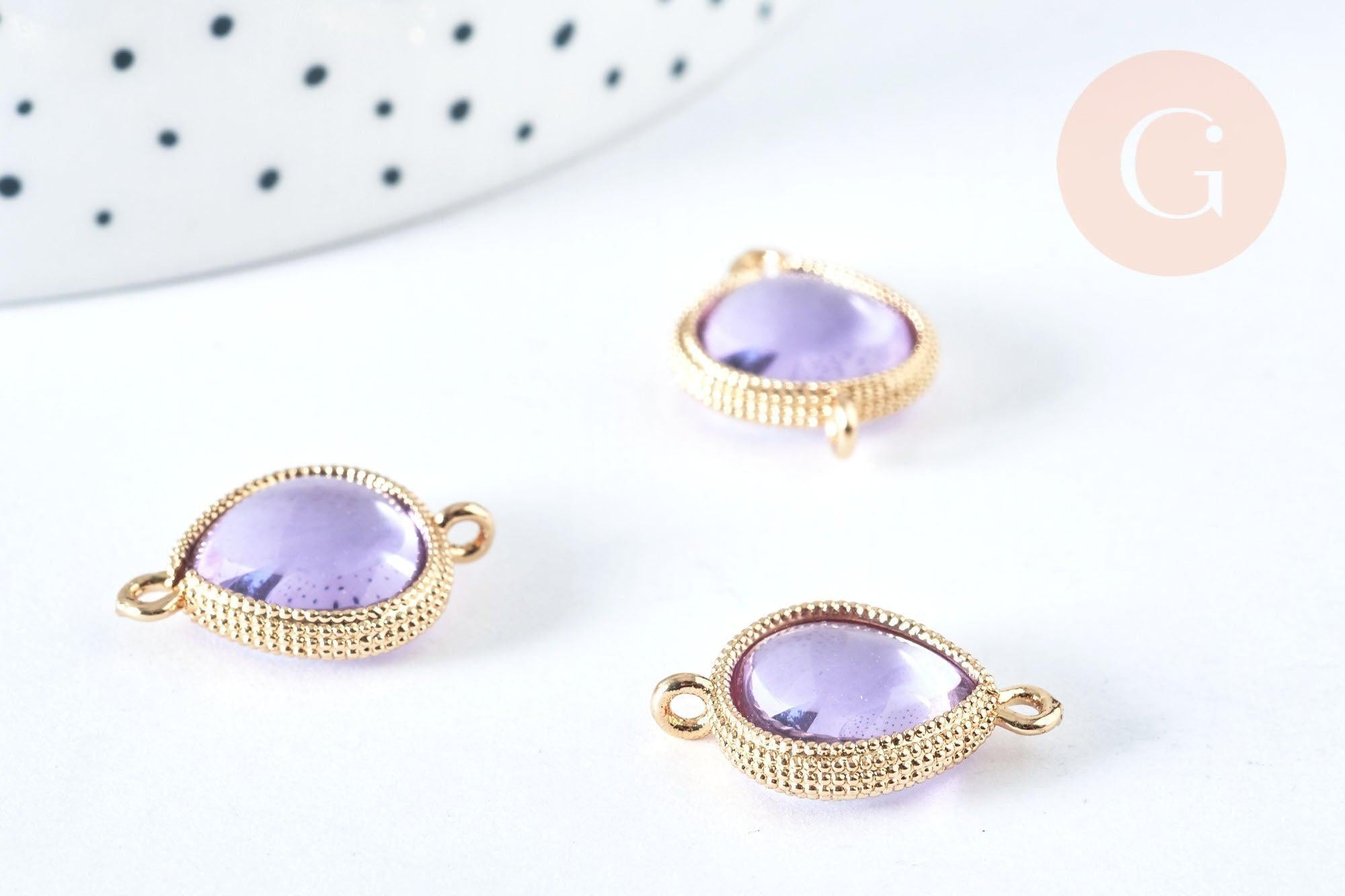 Connecteur goutte cristal verre jade laiton doré 19mm, pendentif imitation jade goutte fabrication bijoux en verre Lilas, x1 G6970