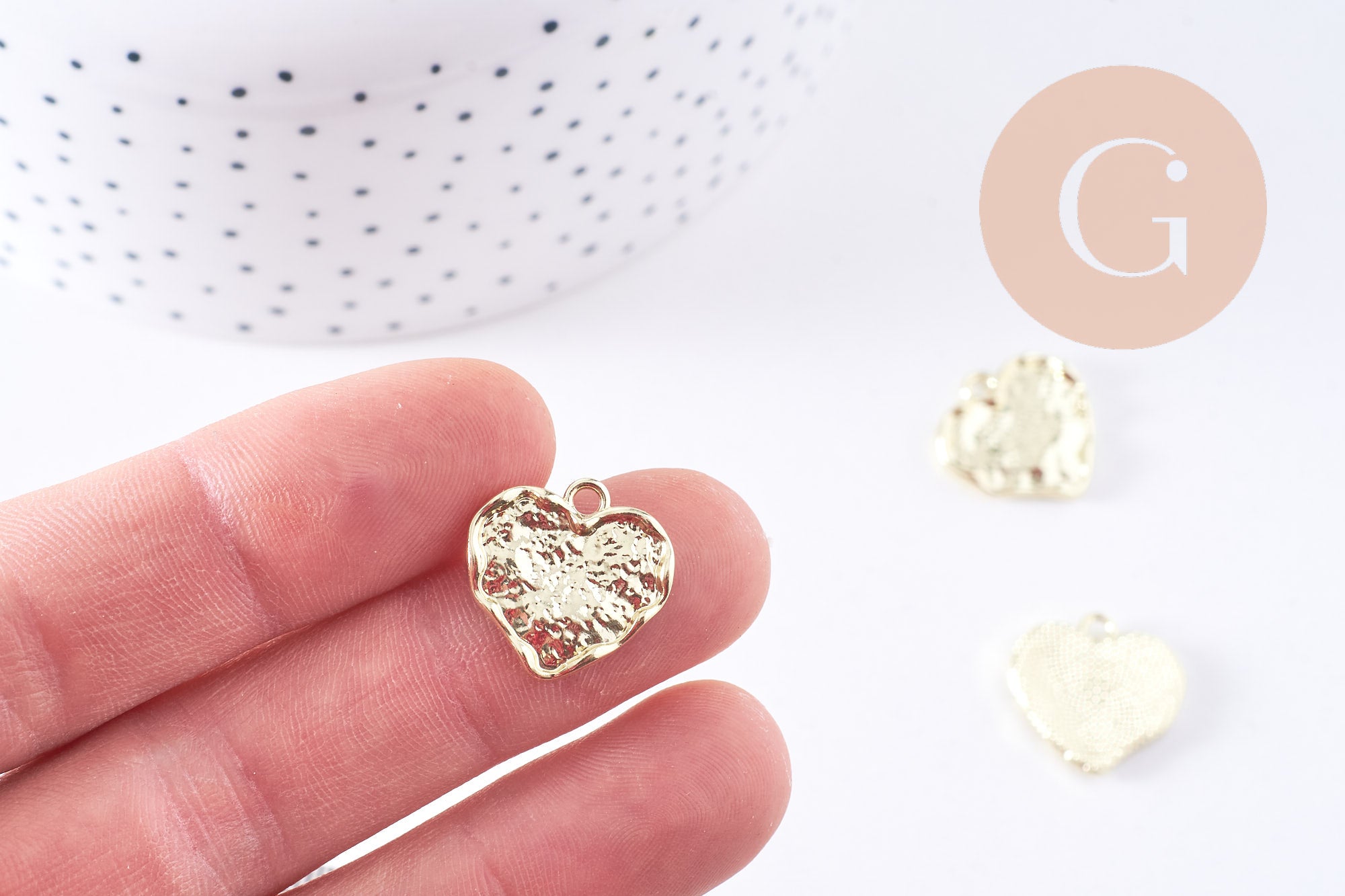 Add charm and depth to your DIY creations with these textured heart pendants in gold-plated zamac . Their hammered finish and generous shape make them ideal for romantic, bohemian, or personalized jewelry.