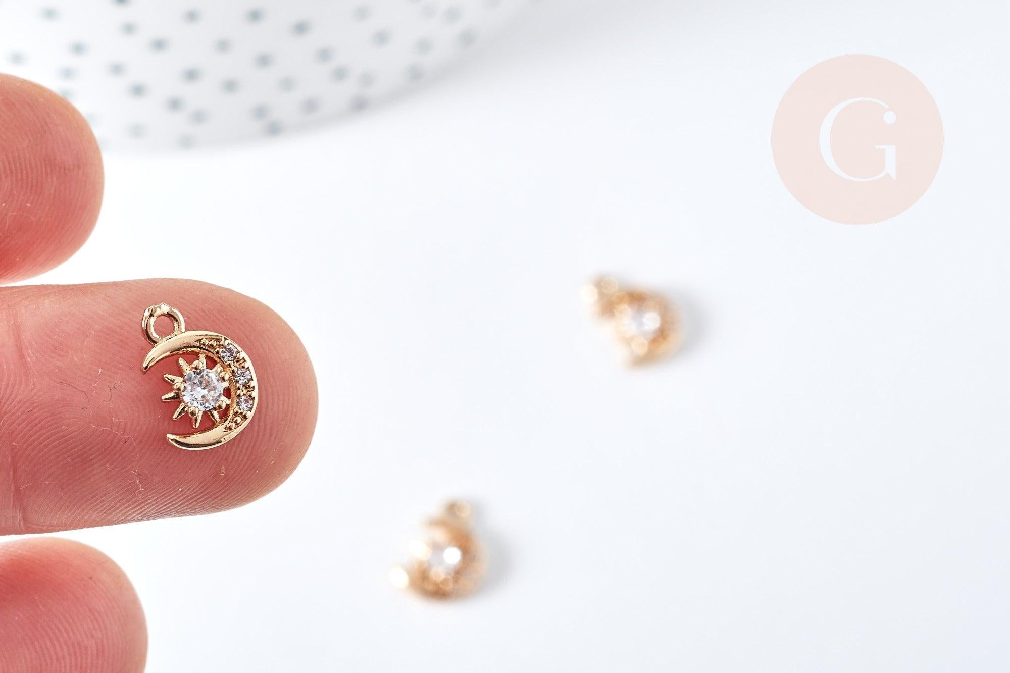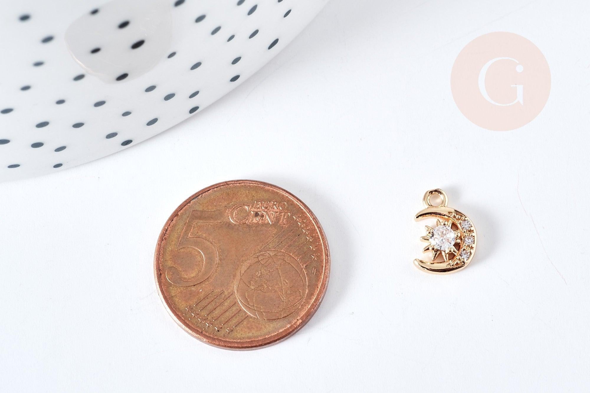 Crescent moon pendant in 18k gold-plated brass with a zircon star, 10.5mm, for jewelry creation x1 (G8580)