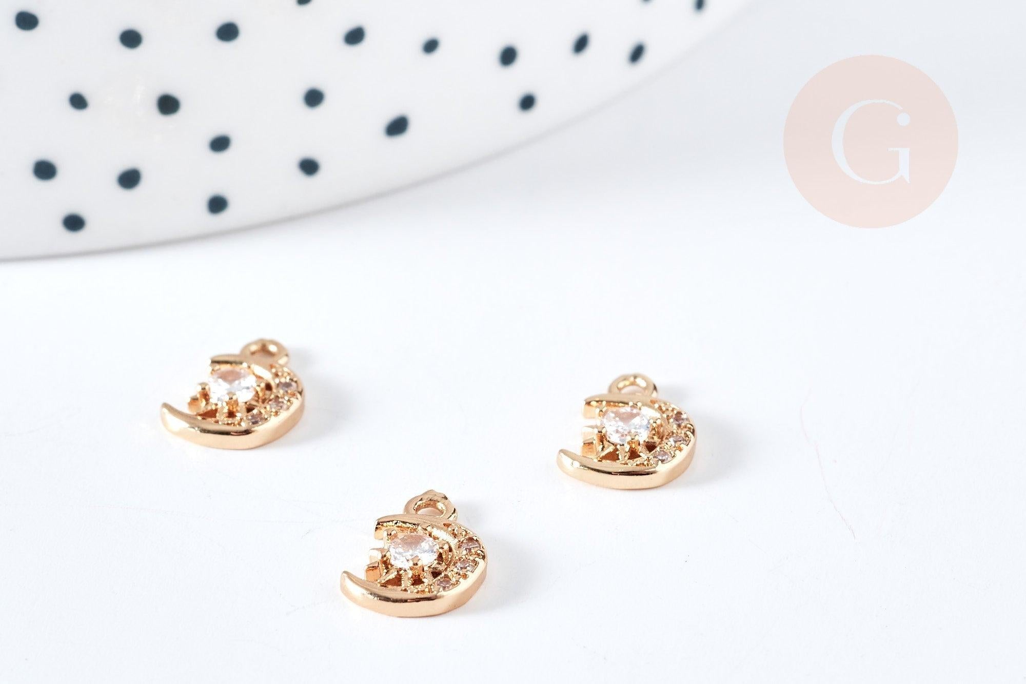 Pendentif croissant lune laiton doré 18k étoile zircon 10.5mm , pendentif pour creation bijoux x1 (G8580)