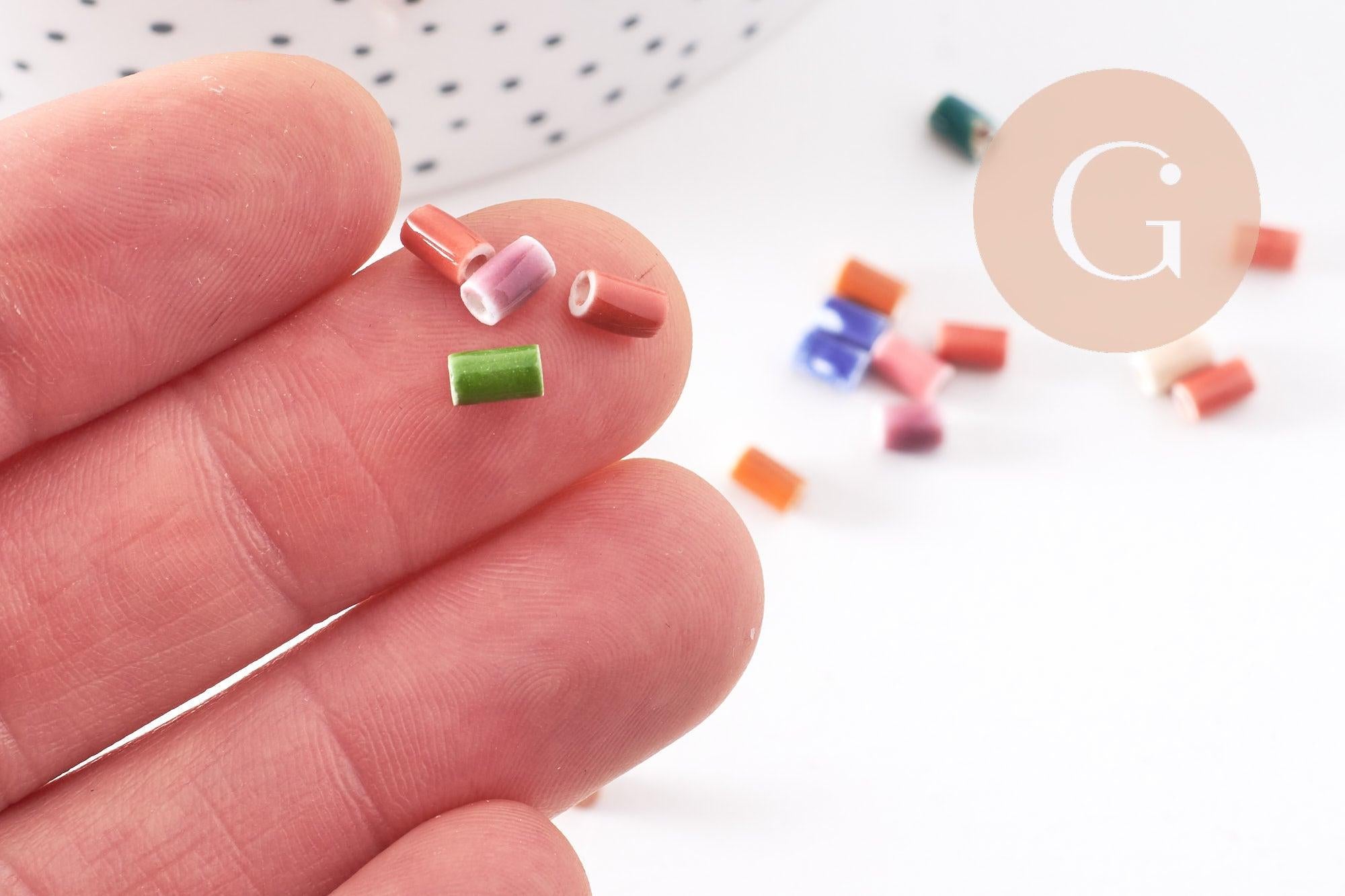 multicolor porcelain pearl, creative supplies, ceramic pearl, blue porcelain, tube pearl, jewelry creation, Set of 10, 5x3mm