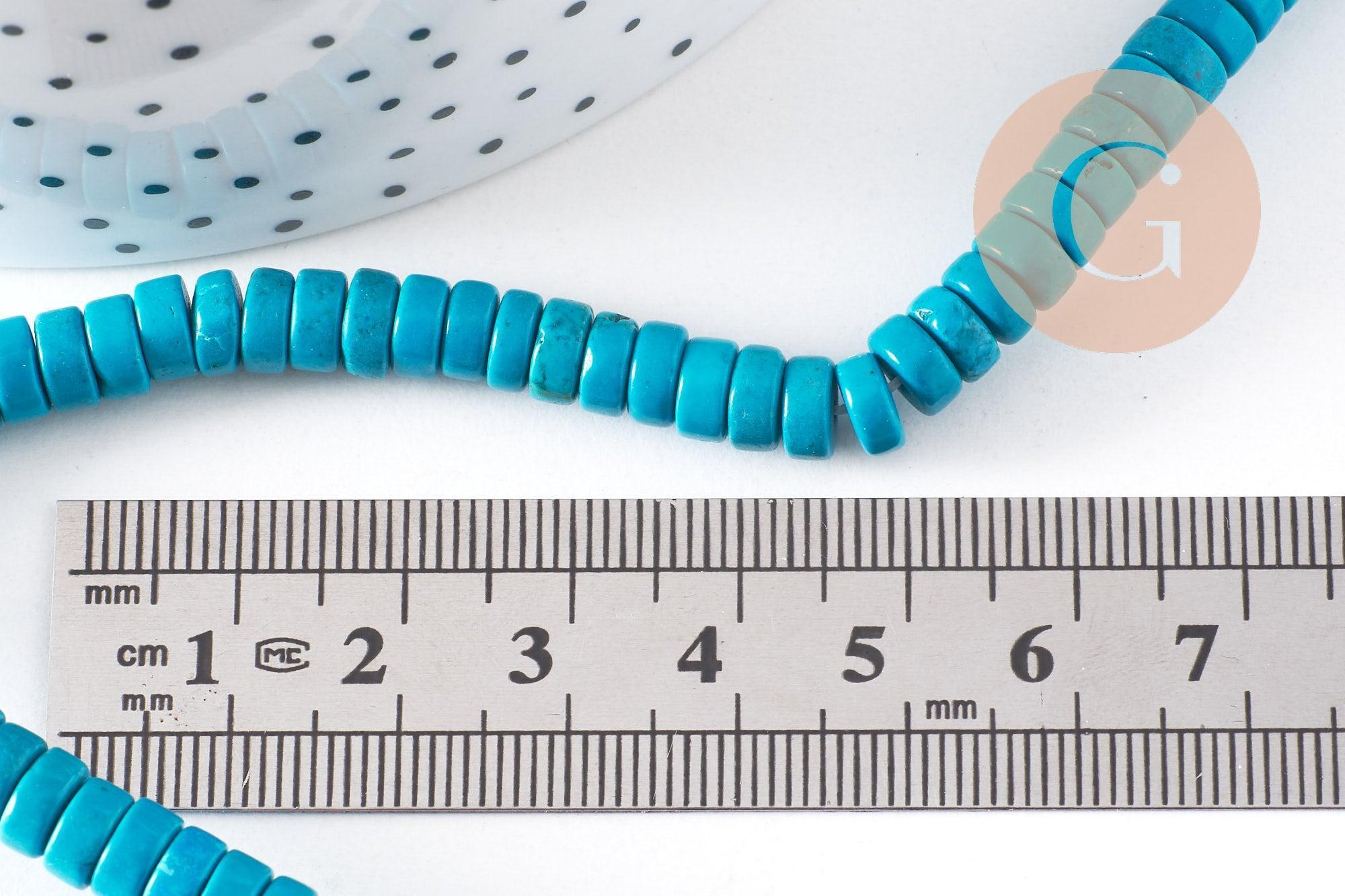 Perle rondelle turquoise naturelle sinkiang 6mm, x1 fil de 39.5cm (G5371)