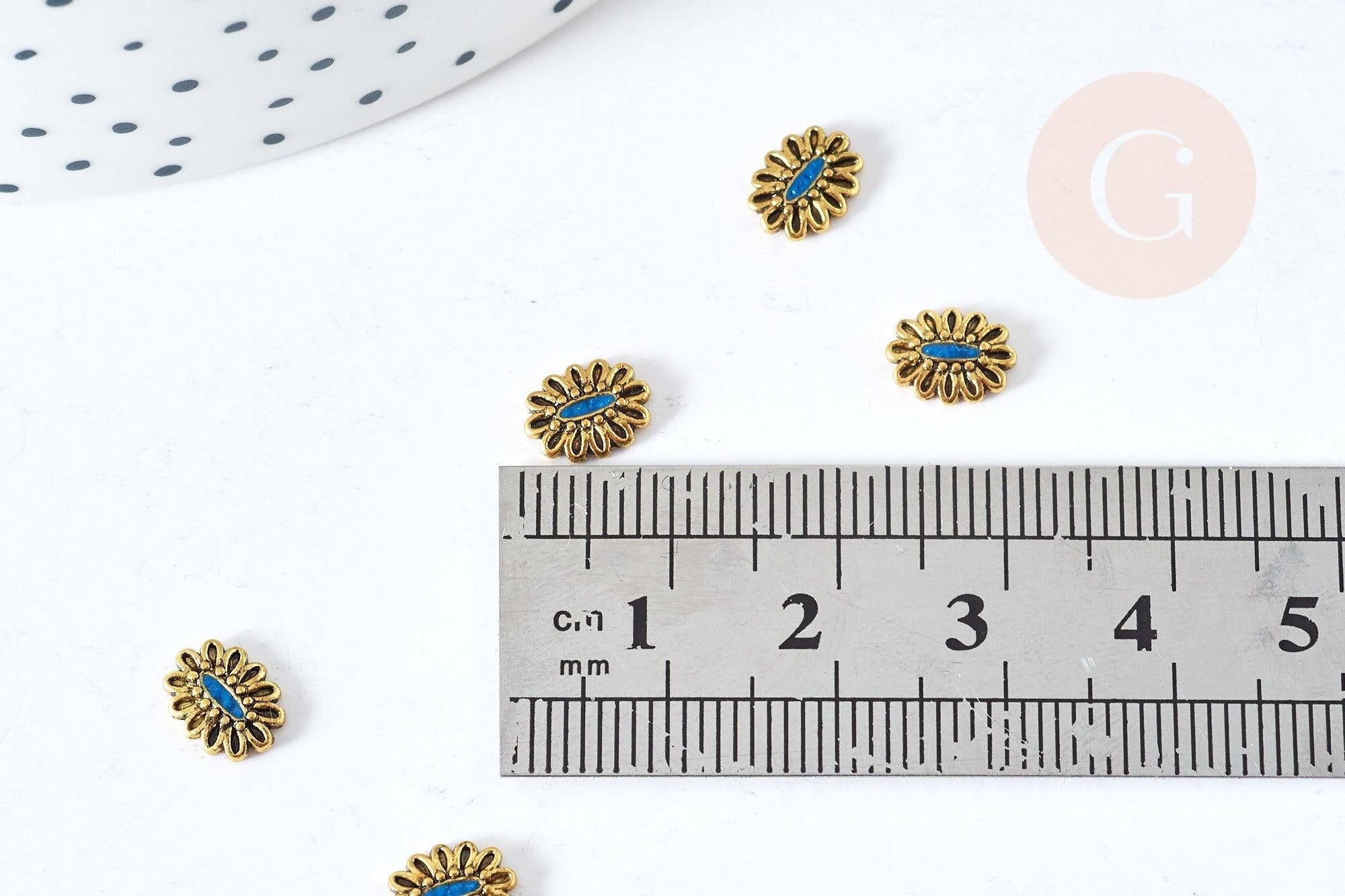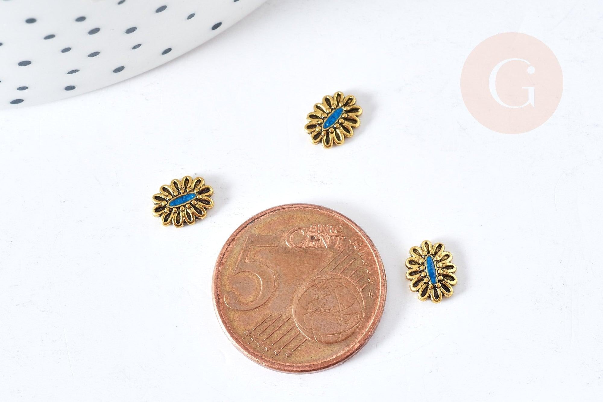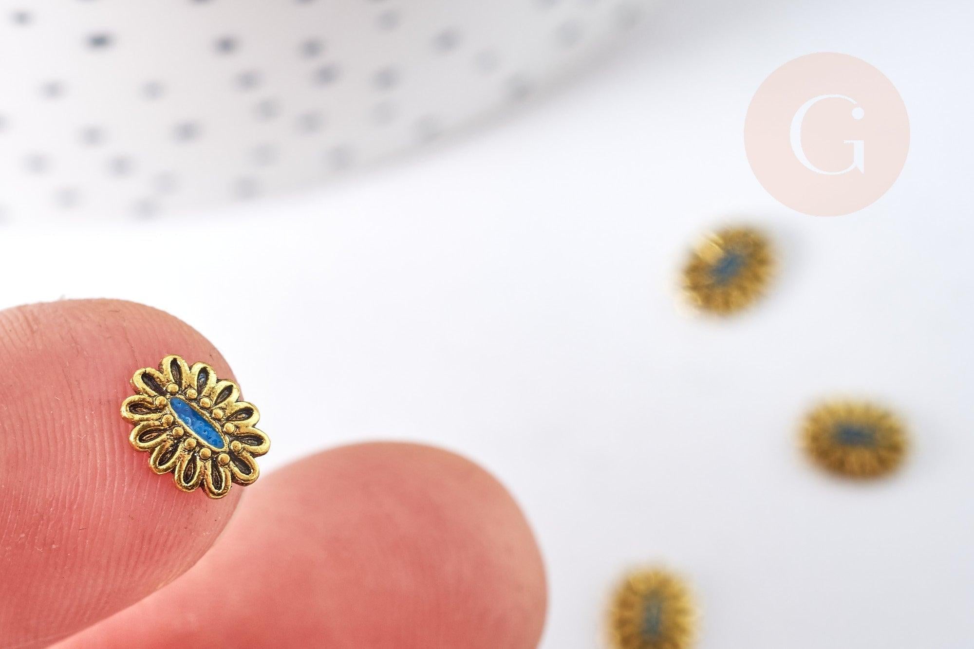 Personalize your DIY costume jewelry with these charming 8mm blue enamelled bronze zamac oval flower stick-on charms . Use them to decorate your cabochons, stones and jewelry for unique and original creations.