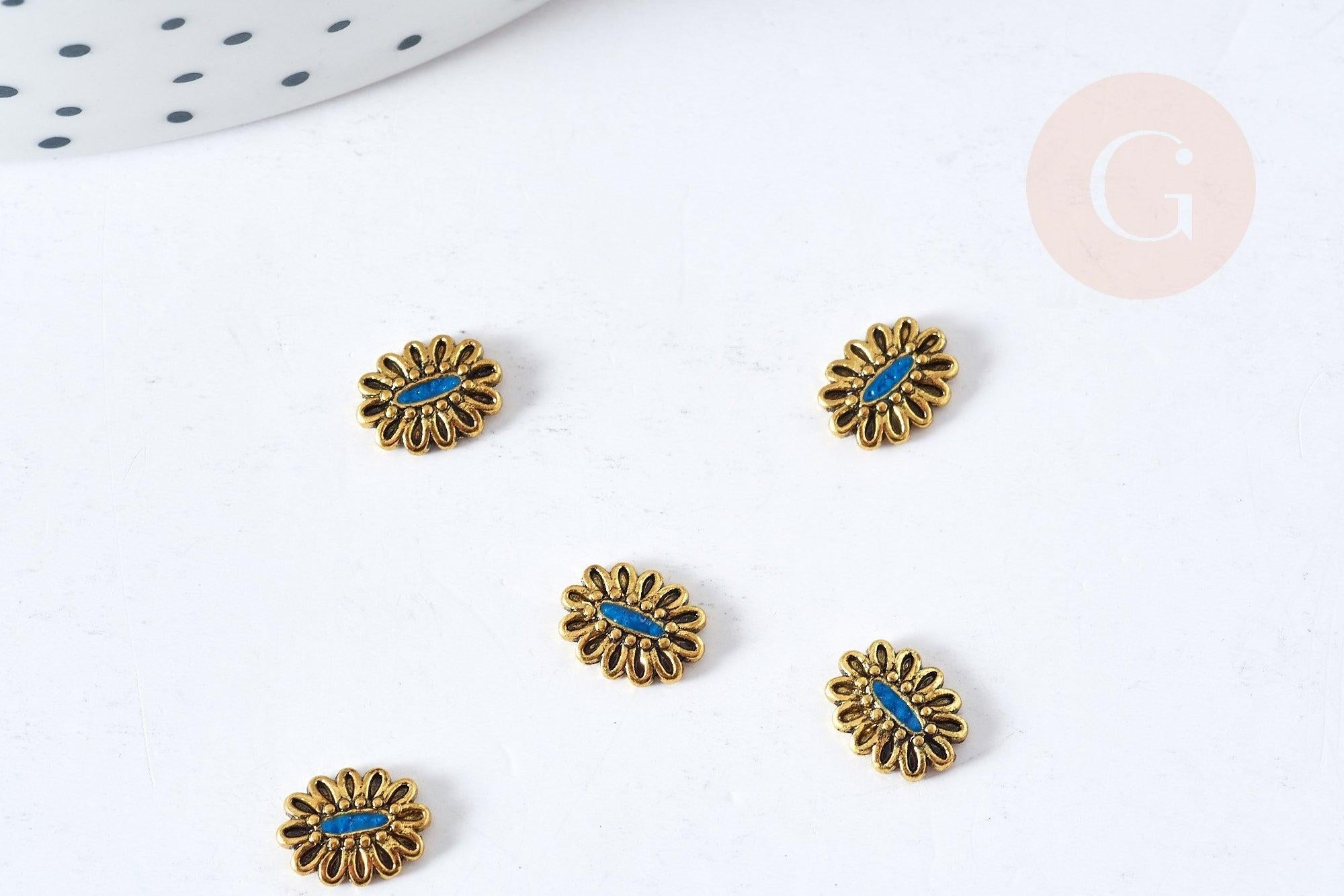 With these elements to stick oval flowers in bronze zamac enamelled with blue, you can personalize your DIY costume jewelry so that they reflect your own style and creativity. It is an ideal choice for DIY jewelry enthusiasts and jewelry professionals looking for new elements for their creations. This set of 5 charms is an essential adhesive supply for all your costume jewelry projects.