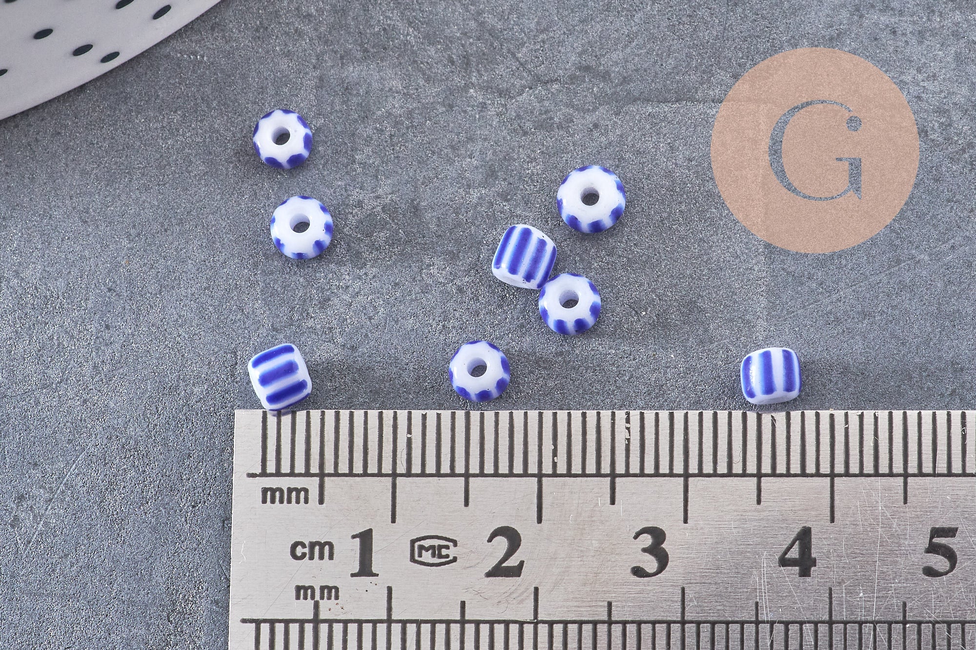 Discover our large 3-4.5mm blue-white striped seed beads, two-tone seed beads ideal for jewelry making. This set contains 10 grams of multicolored striped seed beads, perfect for adding a touch of color and texture to your creations.