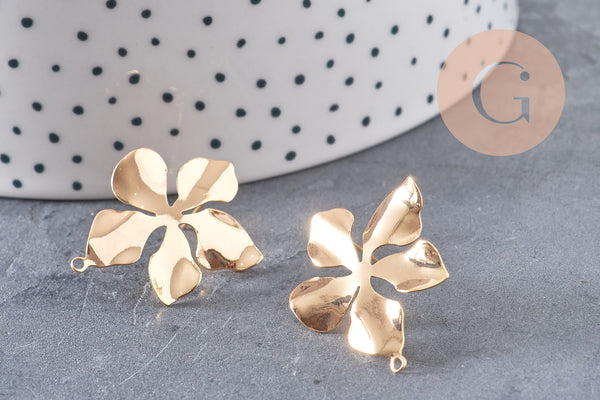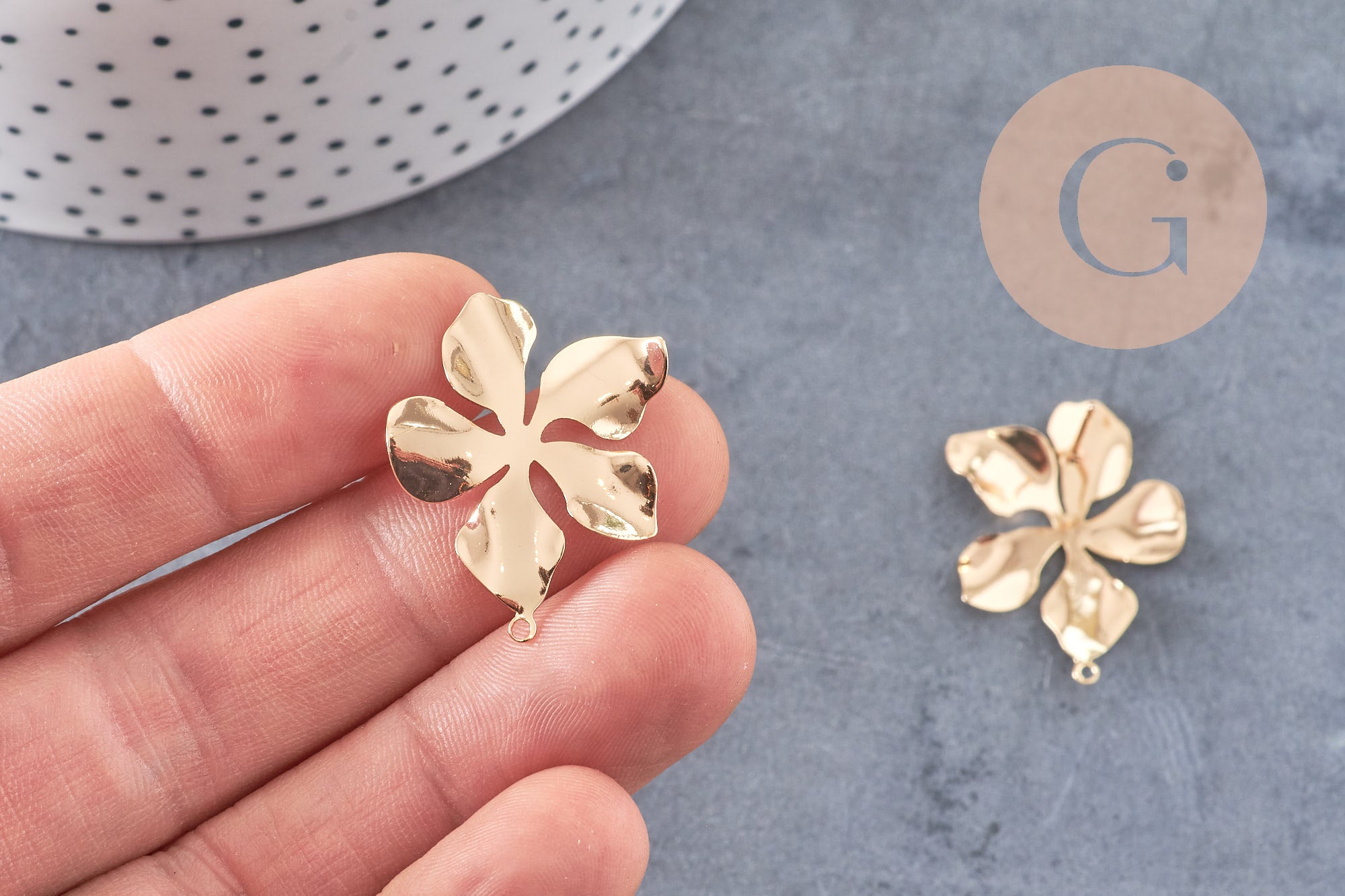 Fall in love with these XL flower-shaped stud earrings in 18K gold-plated brass , with an elegant and modern twisted design. These high-end findings are nickel-free and ready to accommodate a charm or pendant thanks to their 1.2 mm hole at the base of the flower.