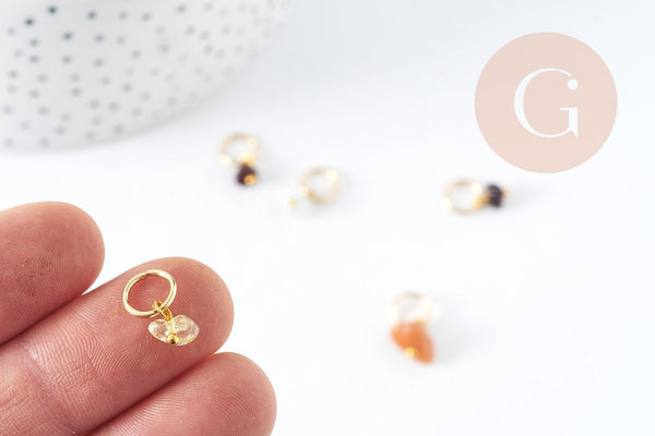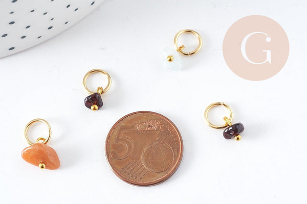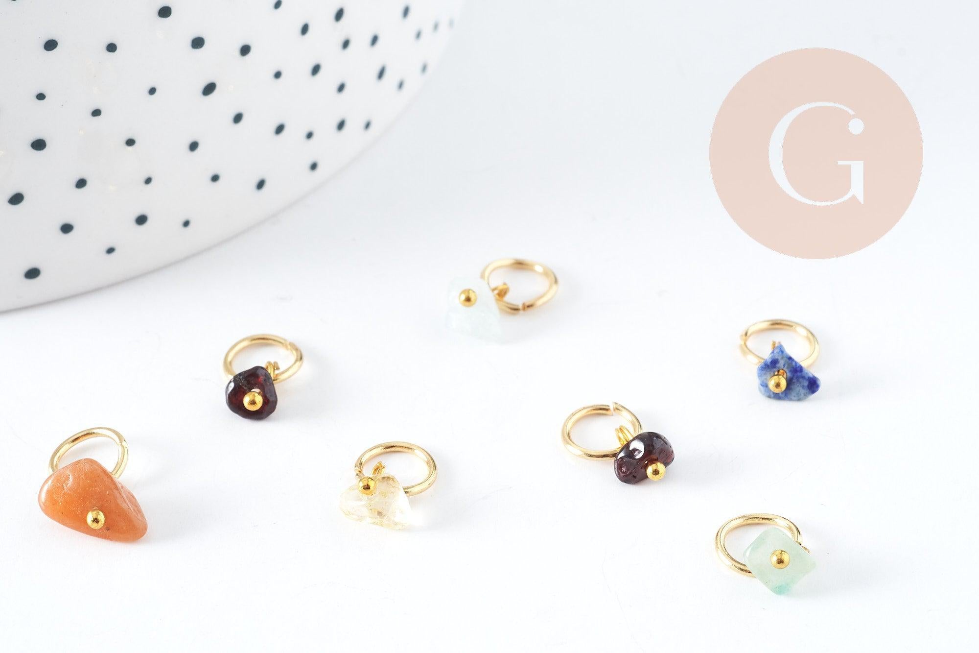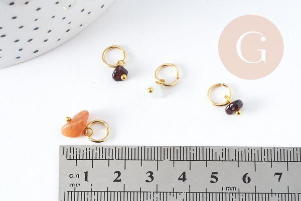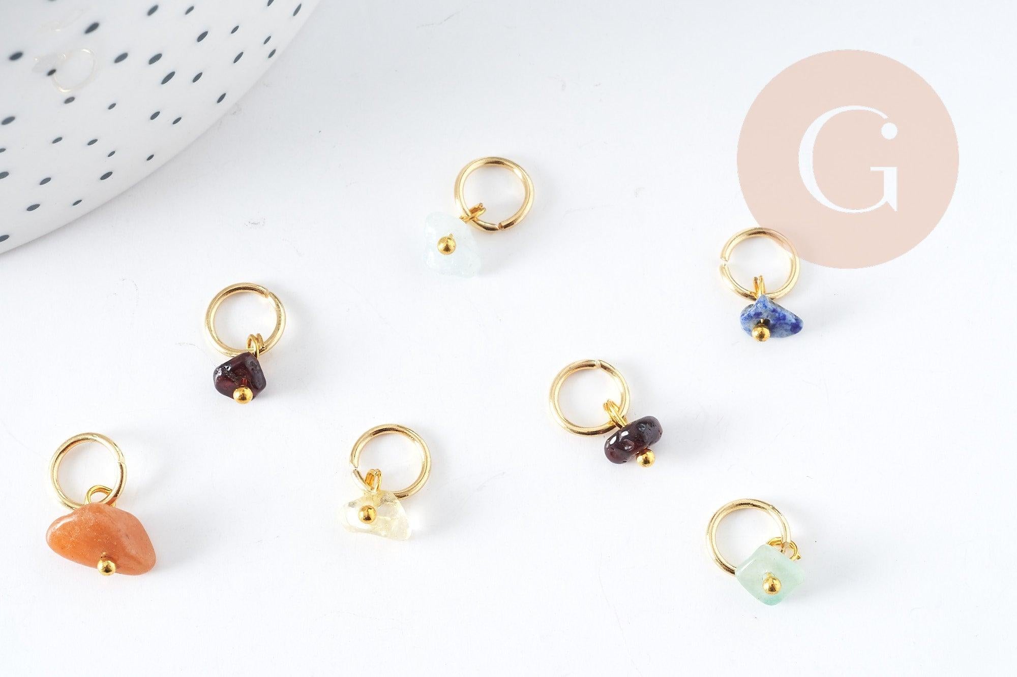 Breloque chips pierre naturelle acier 304 inoxydable doré 14mm, x1 (G9126)