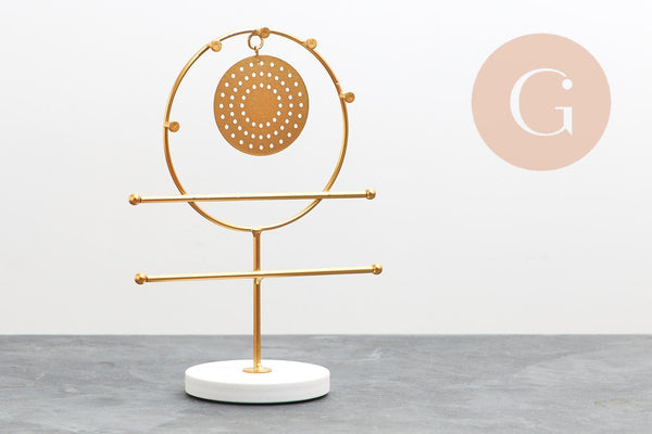With a gilded iron rod and a marble base, it allows you to present your earrings and bracelet in a modern and sophisticated way thanks to its two horizontal bars. Its marble base ensures optimal stability and a high-end finish.