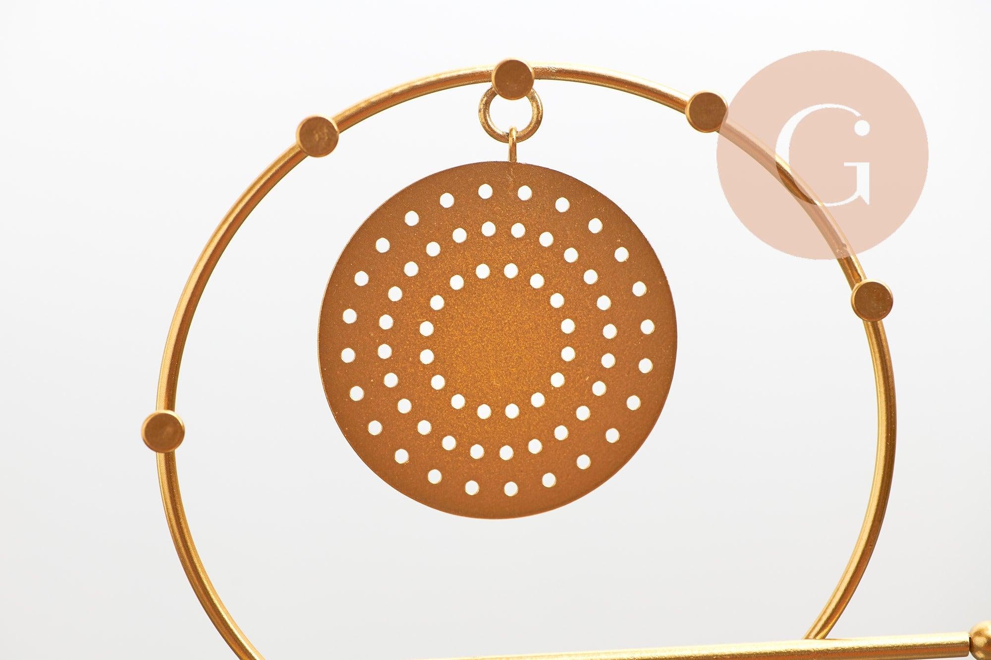 Présentoir à bijoux boucles d'oreilles rond fer doré socle marbre 24.5cm, x1 (G10246)