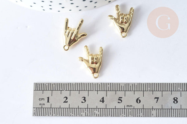 Create lots of Rock costume jewelry with this gold-plated zamac charm , cadmium and lead free, representing the Rock'n Roll sign!