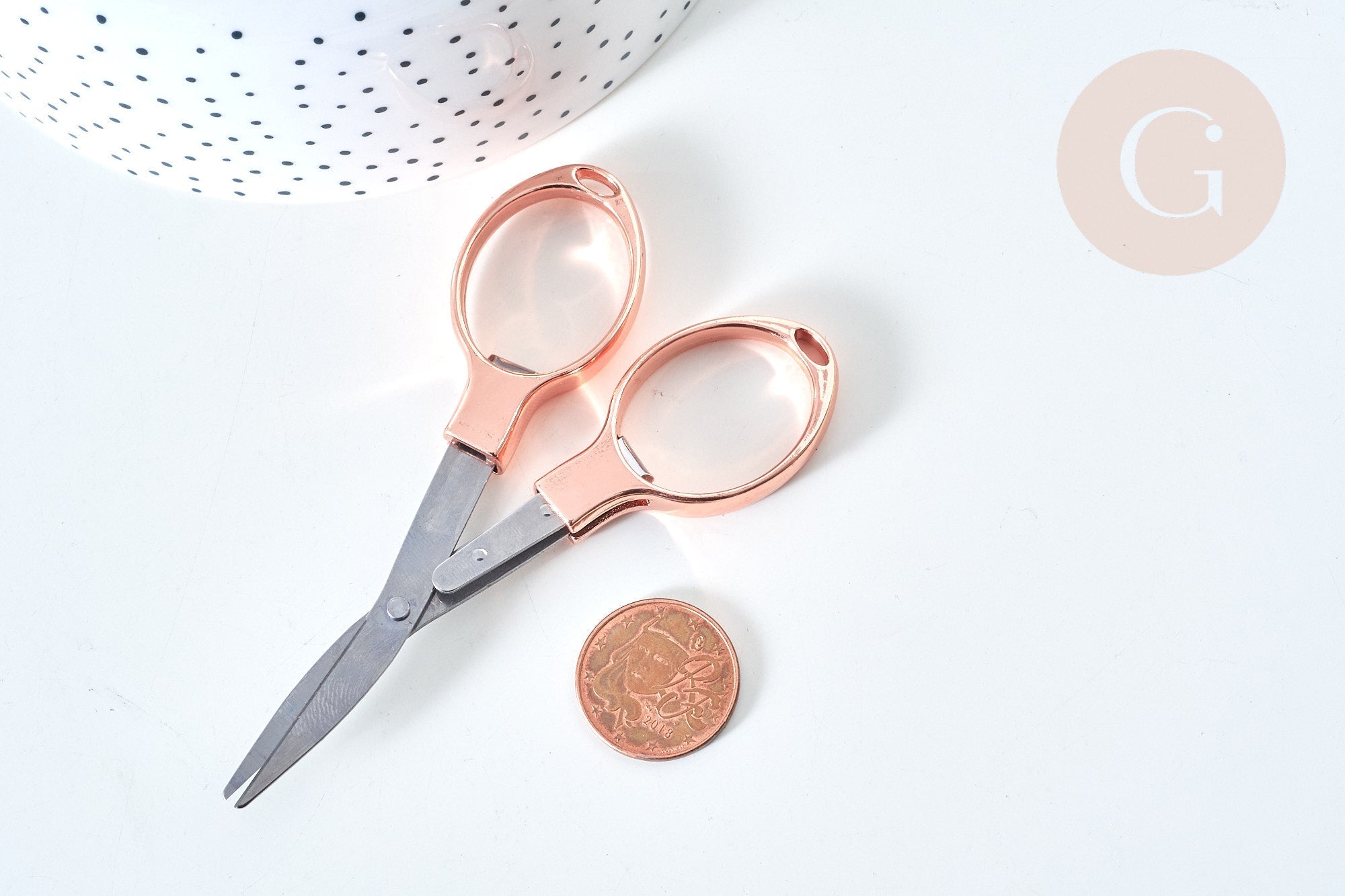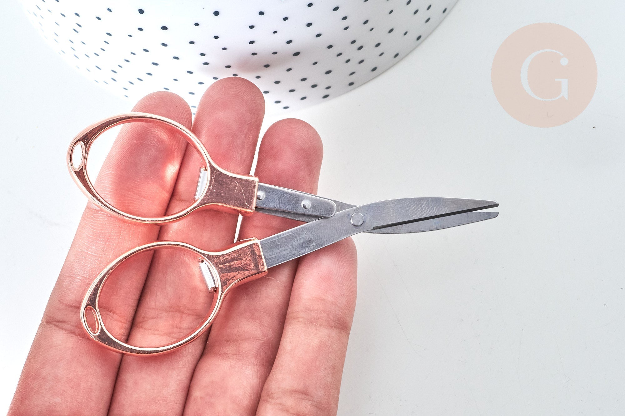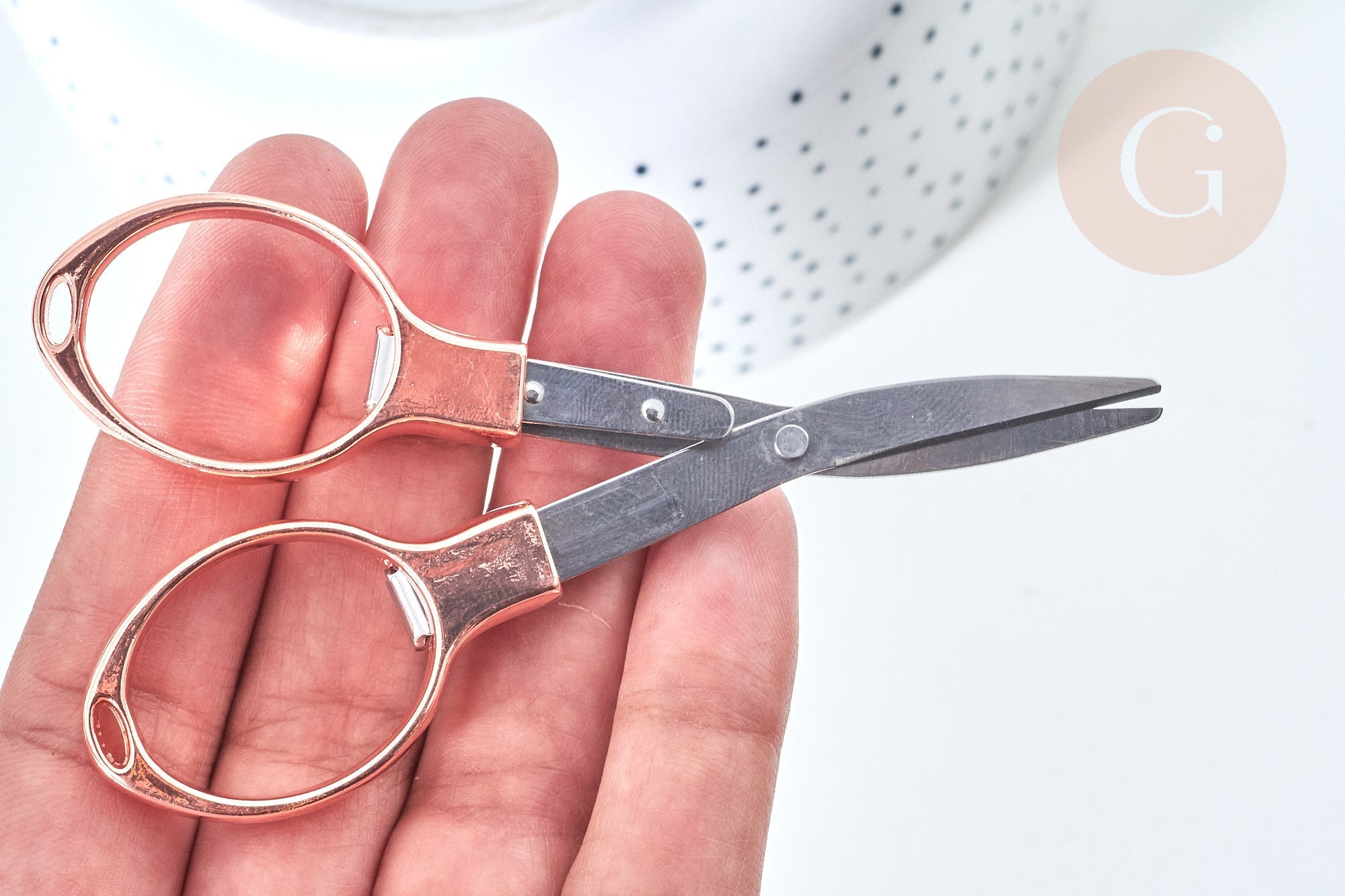 In metallic rose gold , these scissors are trendy and elegant . Even your daughter will want the same ones as you!