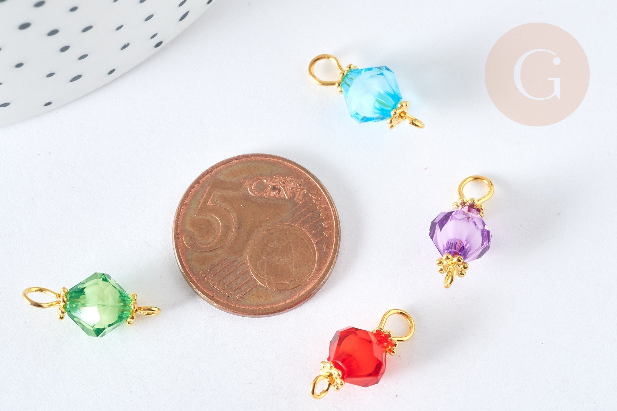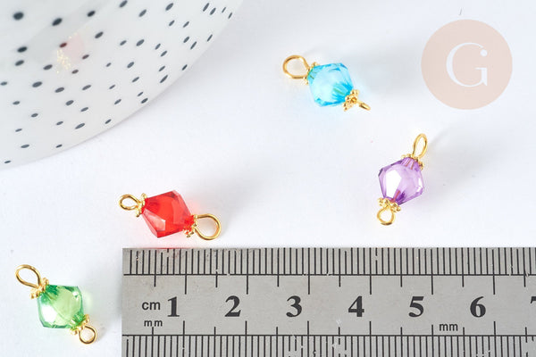 Fall for this little acrylic spinning top connector with its golden brass accessory. Use it to create a multitude of DIY costume jewelry !