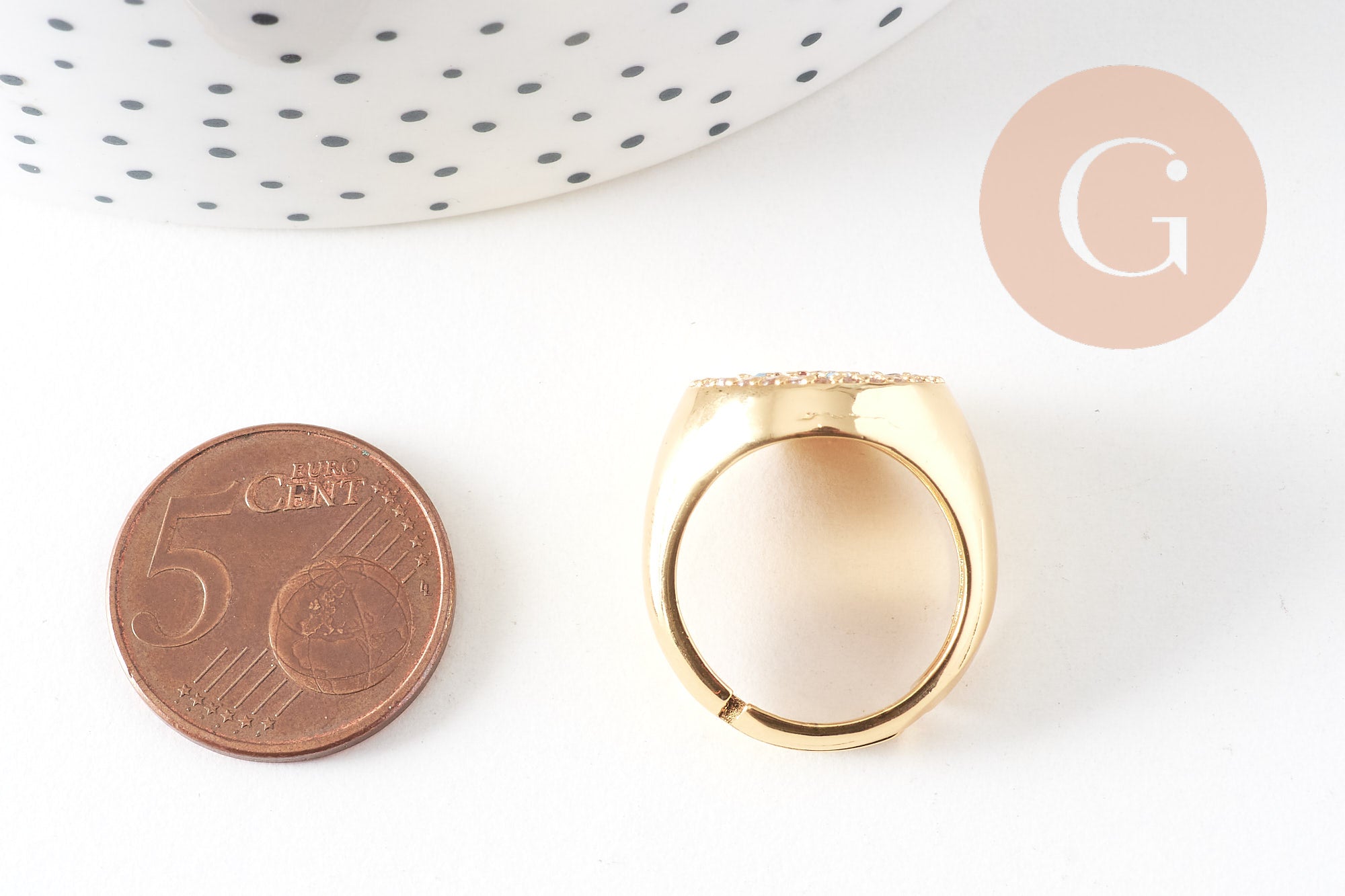 Brass gold zircon signet ring, jewelry creation, men's signet ring, gold ring support, 17mm