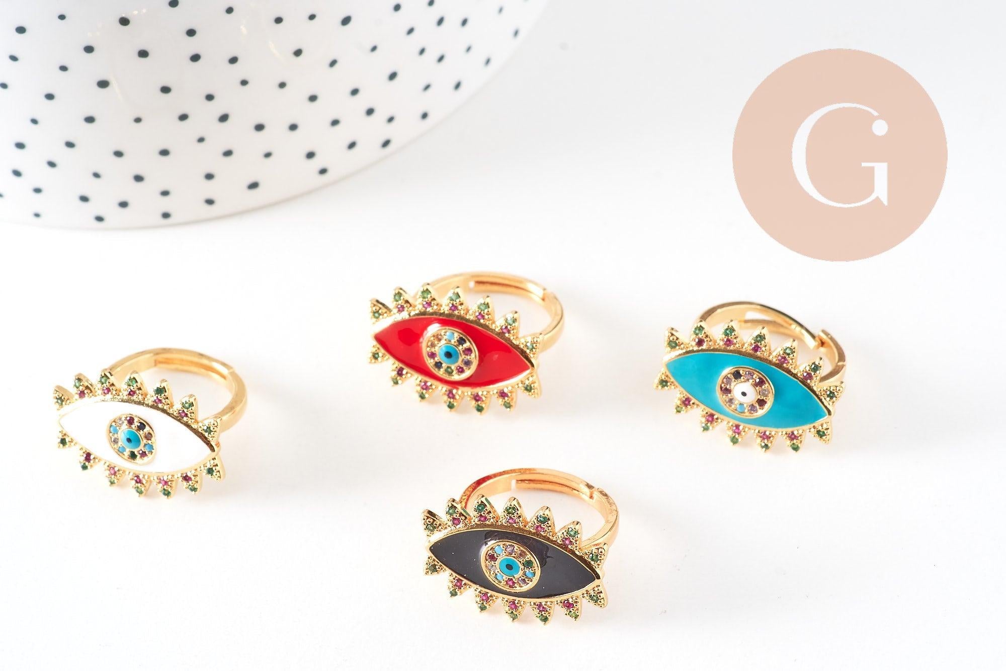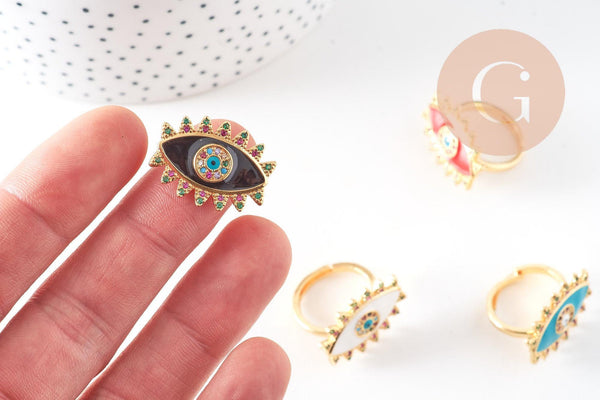 Adjustable ring in gold-plated brass with protective eye enamel, jewelry creation, women's ring, birthday gift, 17mm, unit