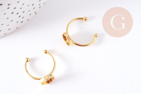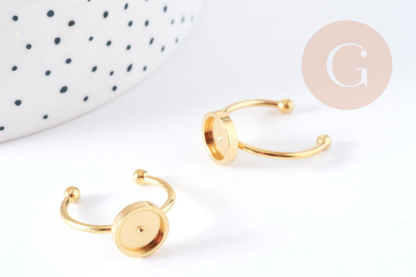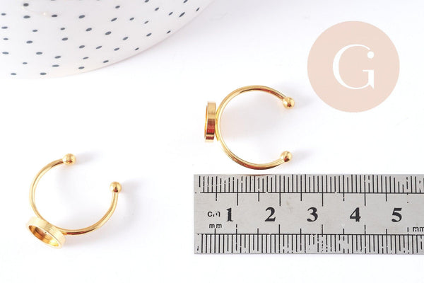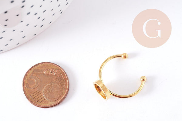 Bague réglable pour cabochon rond 8mm acier 304 inoxydable doré IP 18mm, x1 (G6058)