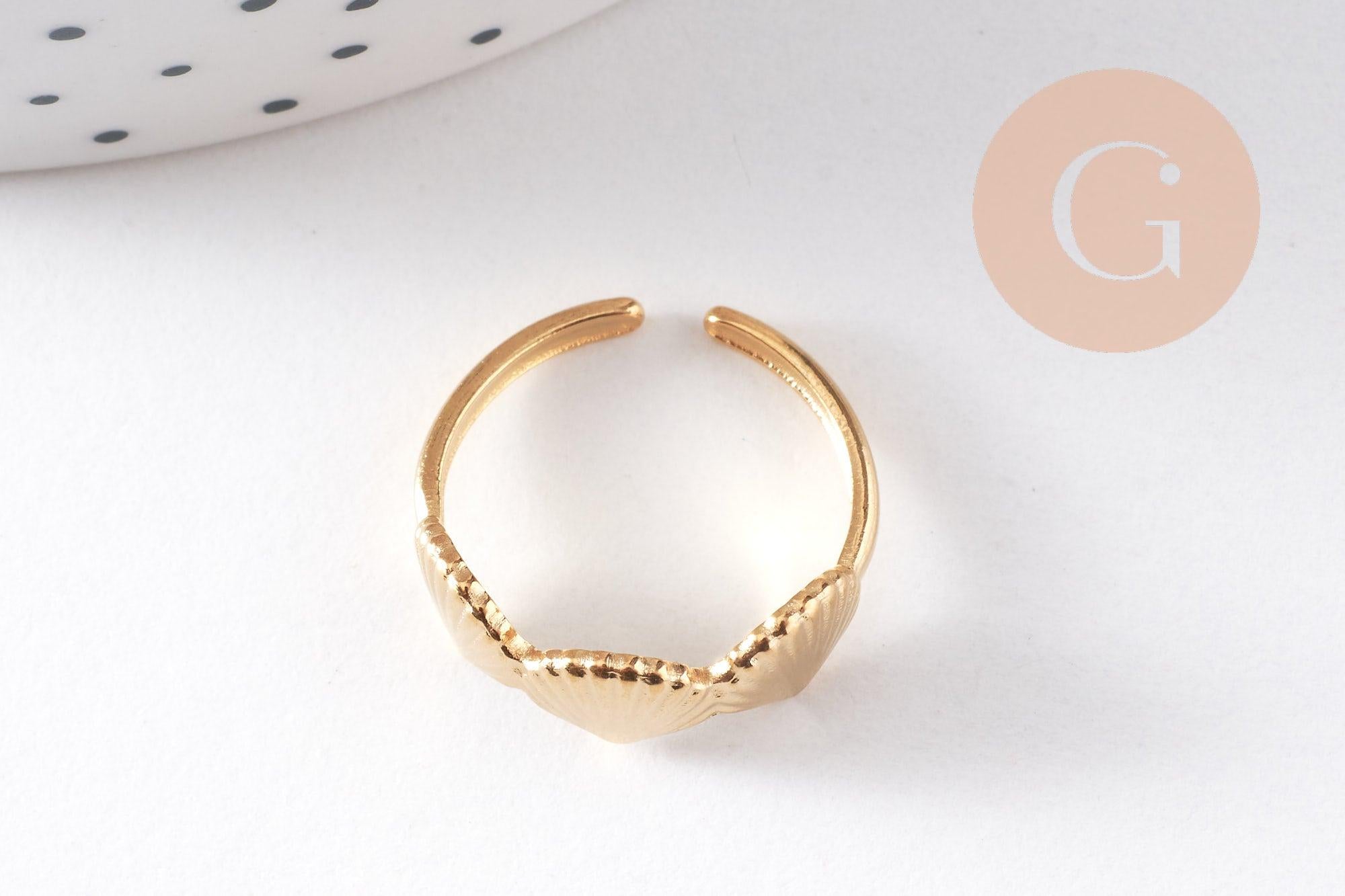 Bring a summery, bohemian touch to your jewelry with this adjustable gold-plated stainless steel ring , adorned with delicately engraved shell motifs . Its open shape makes it easy to adjust to the size of your finger, while ensuring comfort and support.