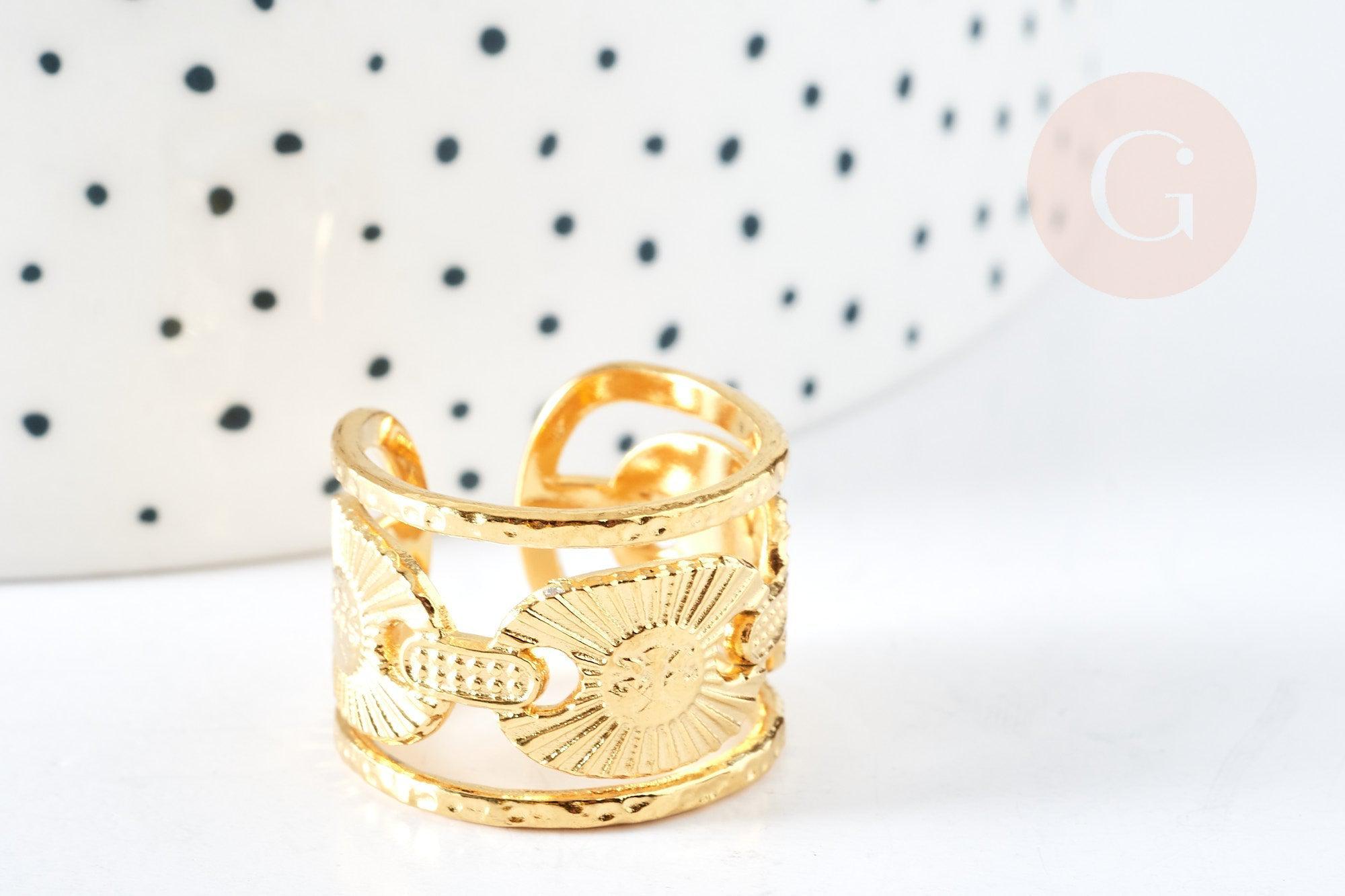 Bague réglable large acier doré 304 inoxydable IP taille 54, x1 (G8462)