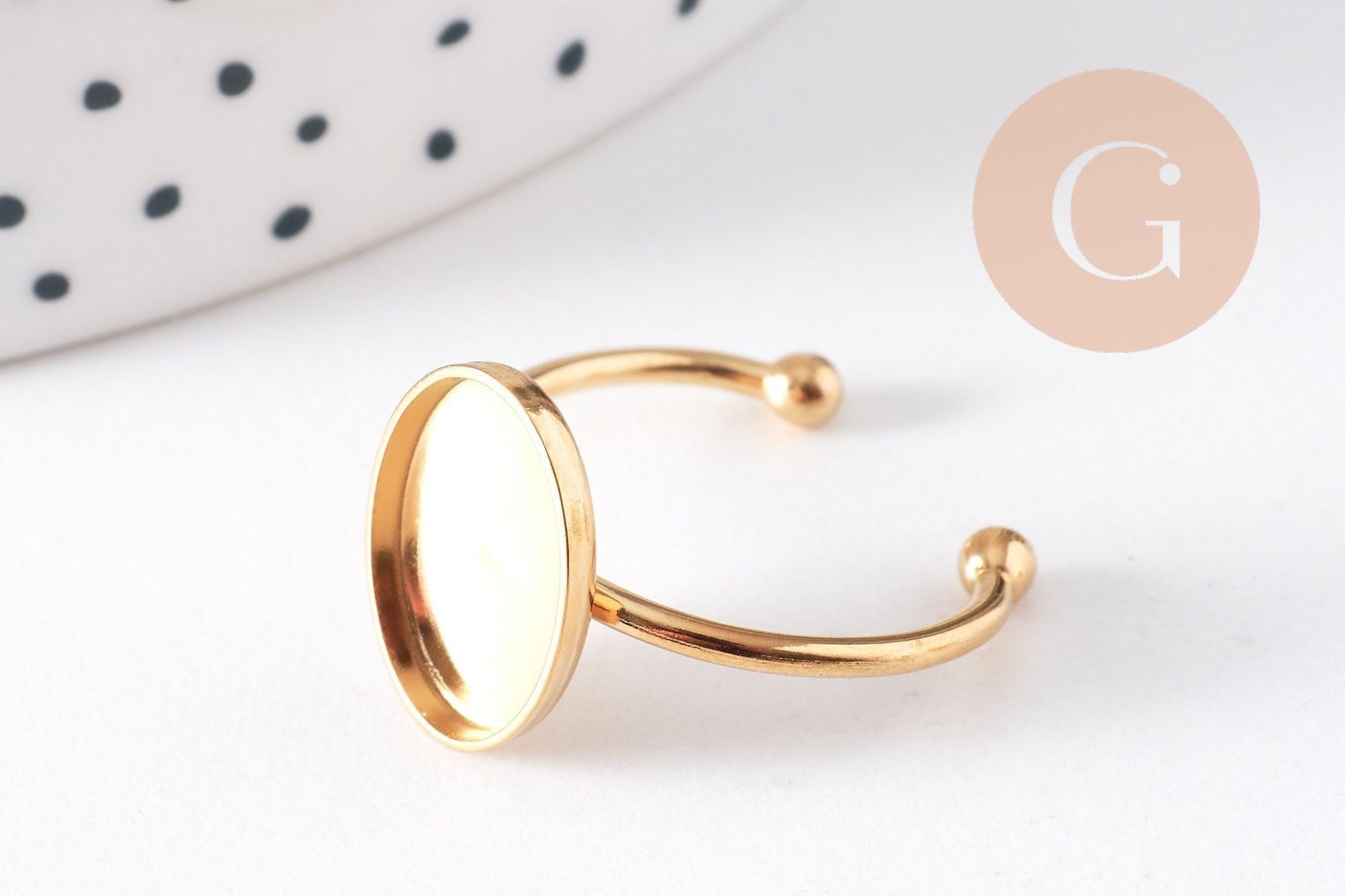 Thanks to its gold ion plating (IP) , this ring is durable, resistant to wear and oxidation . Its simple and elegant design makes it a perfect base for creating personalized rings with natural stone, resin or glass cabochons.