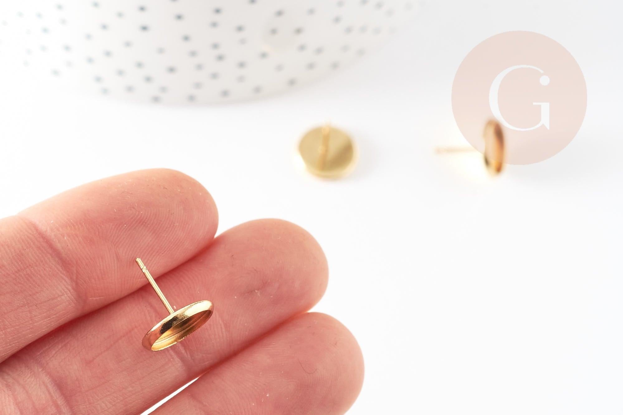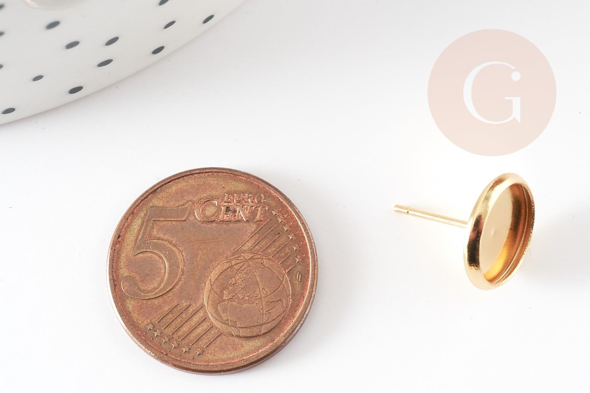 Clous-puces oreille support cabochon rond 10mm acier 304 inoxydable dore 24K, x10 (G9219)