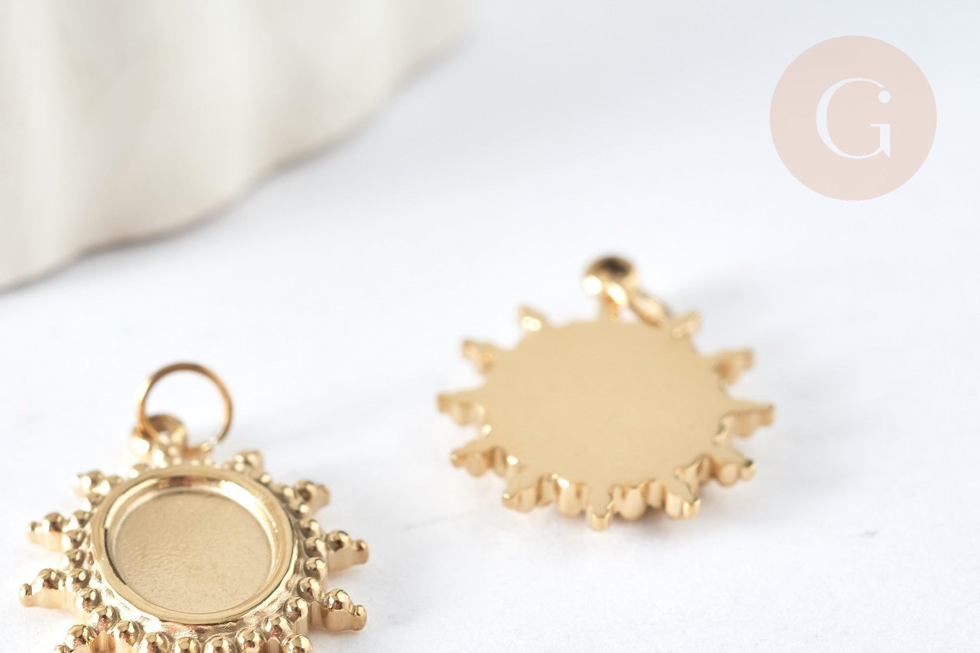 Make your outfit shine with this pendant , cabochon support, in the shape of a sun , in gold-plated 304 stainless steel. It will be ideal for imagining many costume jewelry pieces!