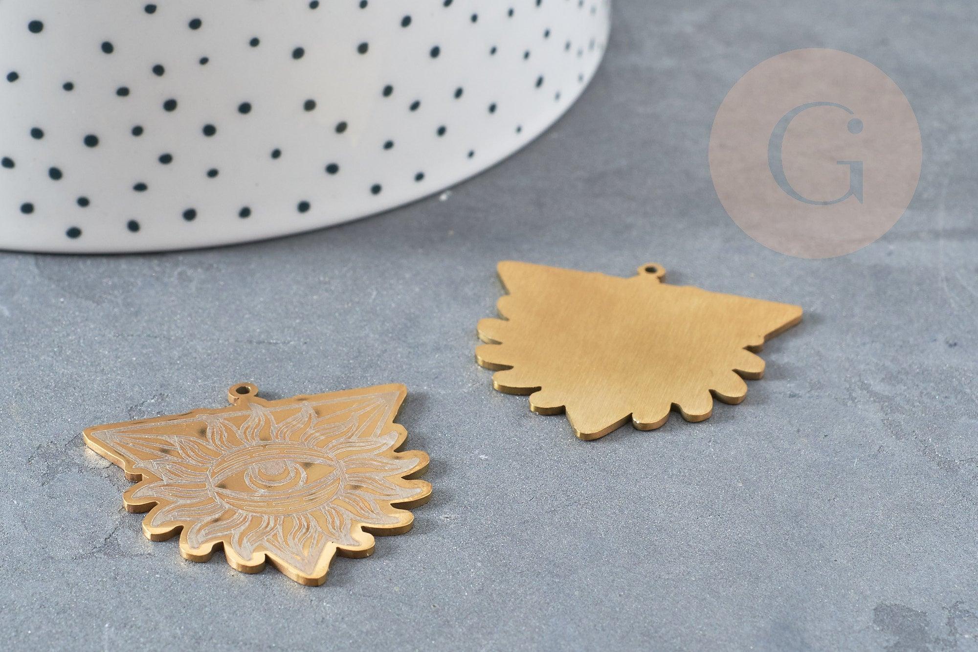 A triangle pendant engraved with a protective eye inside, in gold-plated stainless steel.