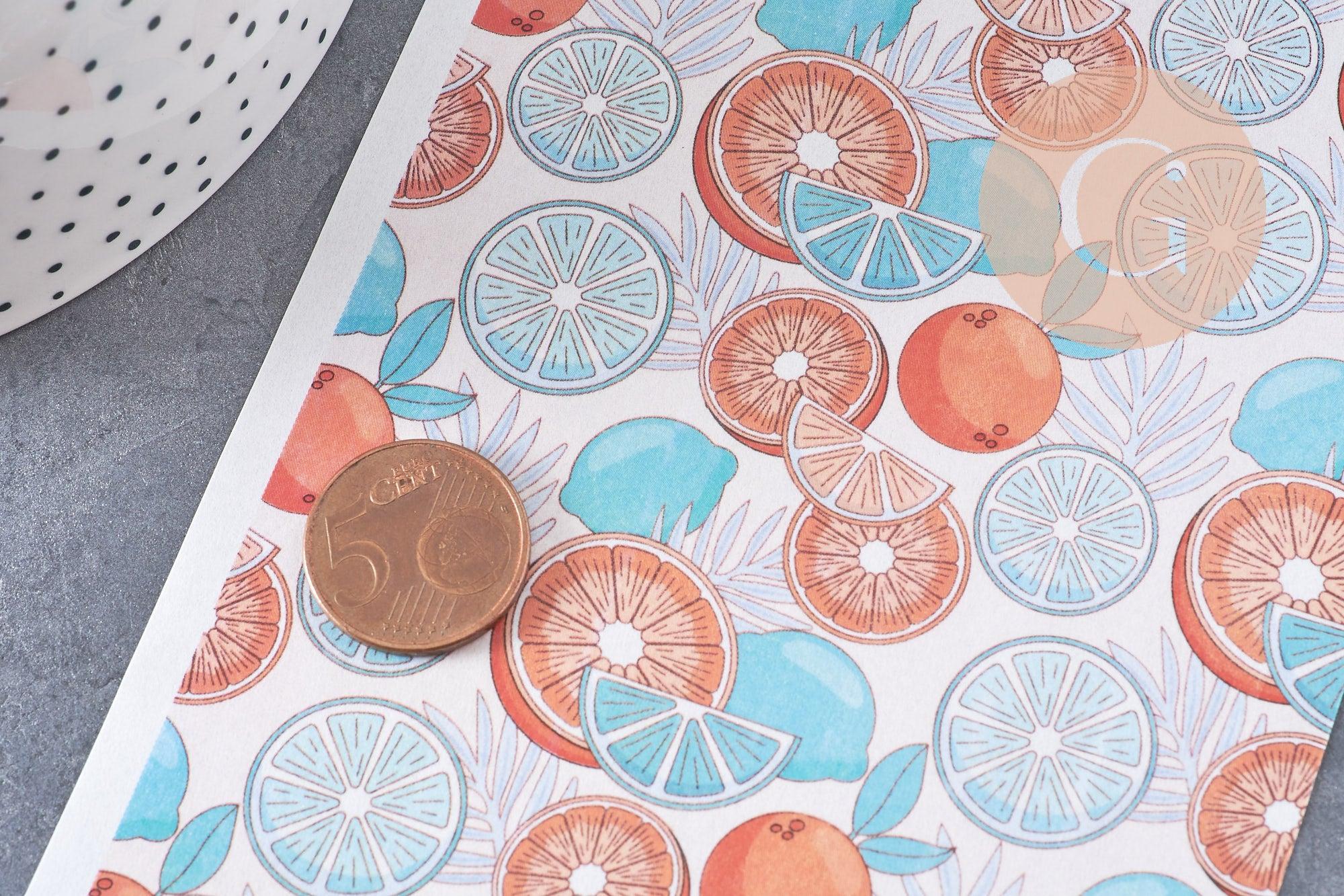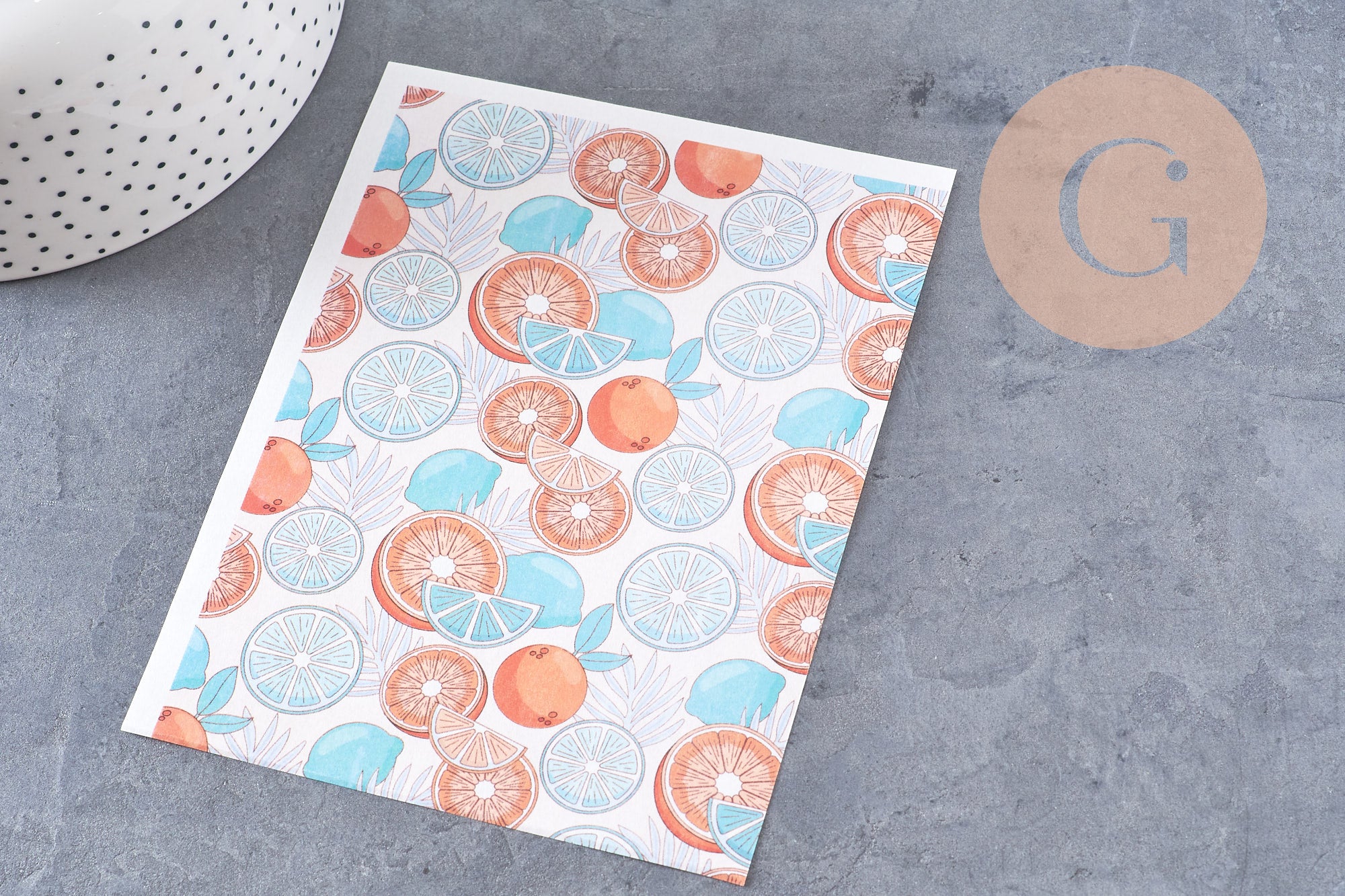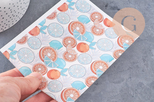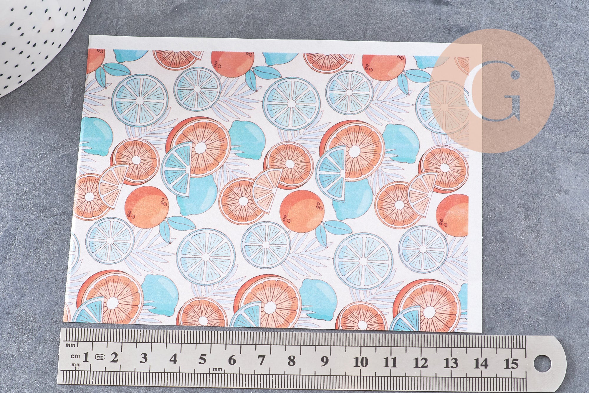 Add a fresh, vibrant touch to your creations with this polymer clay transfer sheet . Its orange and green citrus fruit pattern on a light orange background is perfect for creating bright, vibrant summer jewelry.