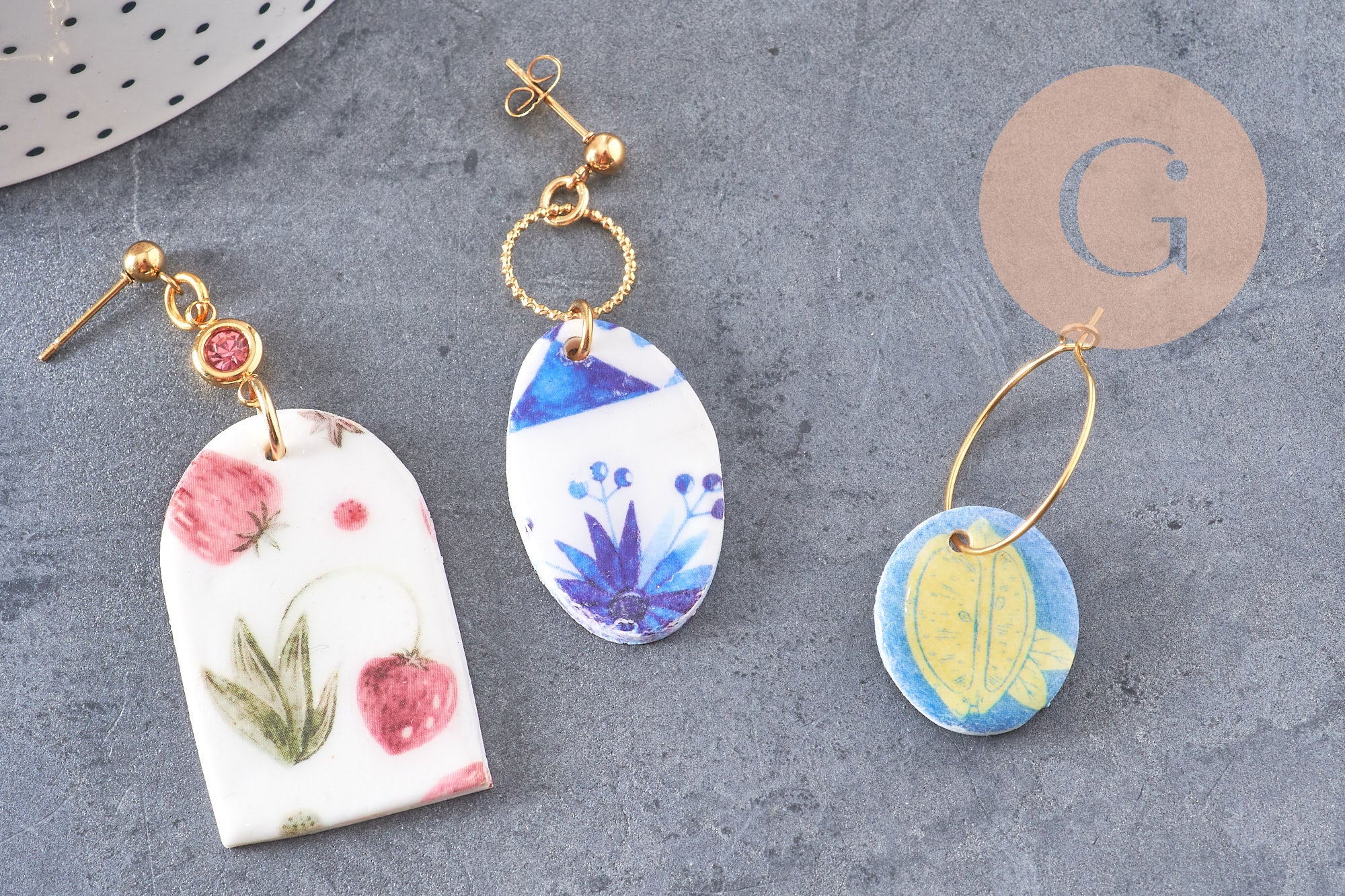 The transfer does not adhere well to FIMO clay, especially FIMO Soft . For best results, use a light clay such as Cernit or Sculpey Soufflé . Avoid dark clays, which will reduce the legibility of the pattern.
