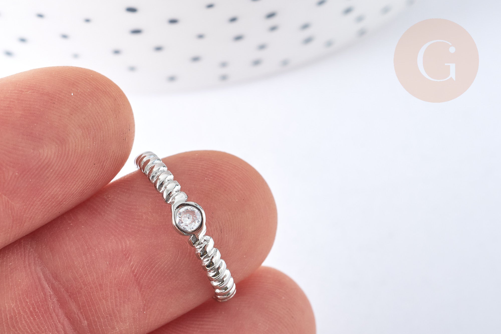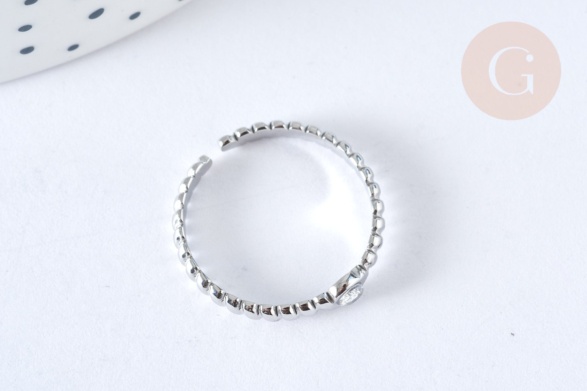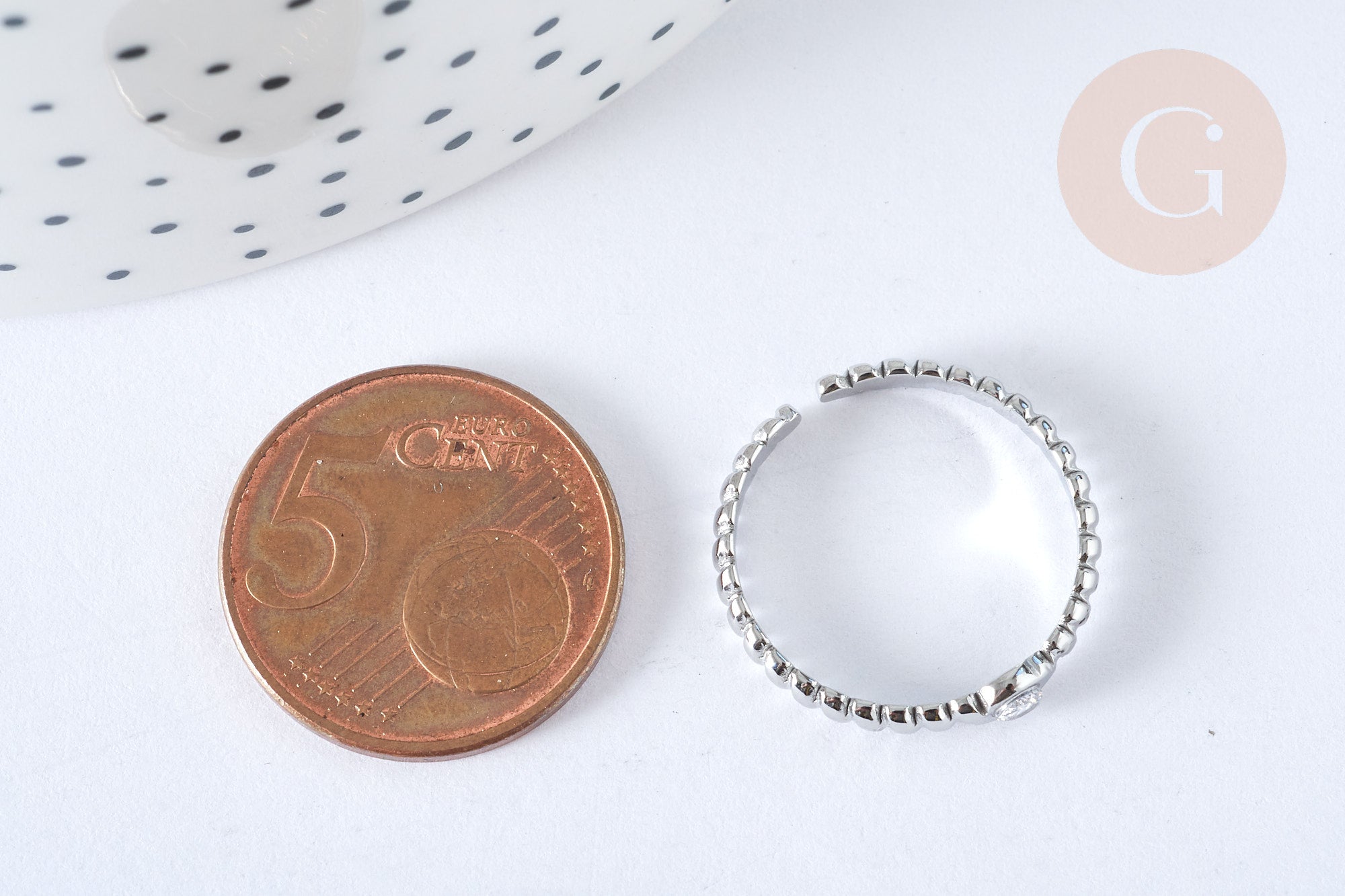Anillo ajustable de circonita fina EP en acero inoxidable plata 304, talla 63, x1 (G7057)
