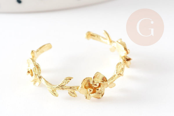 Anillo de flores de latón crudo ajustable, suministros creativos, creación de joyas, anillo de latón crudo, anillo ancho, soporte de anillo