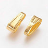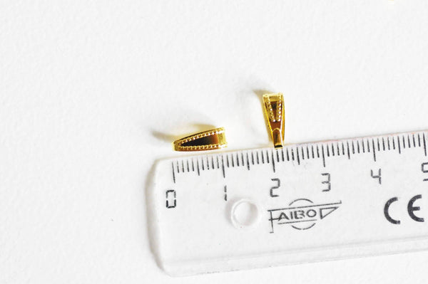 Añade un toque elegante y profesional a tus creaciones con estos enganches de latón chapado en oro de 11 mm . Su diseño minimalista y su hermoso brillo dorado los convierten en accesorios esenciales para crear colgantes refinados y modernos.