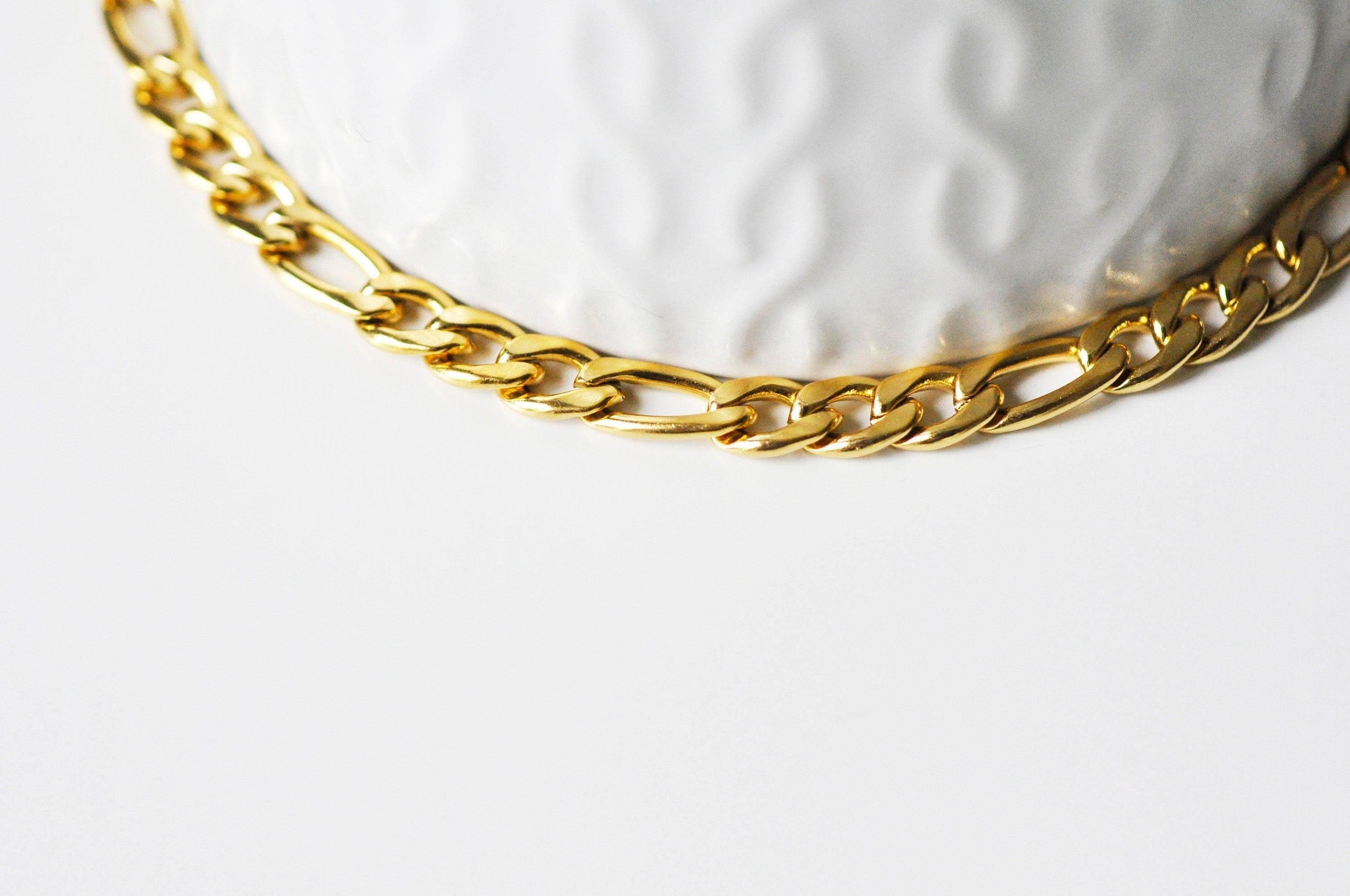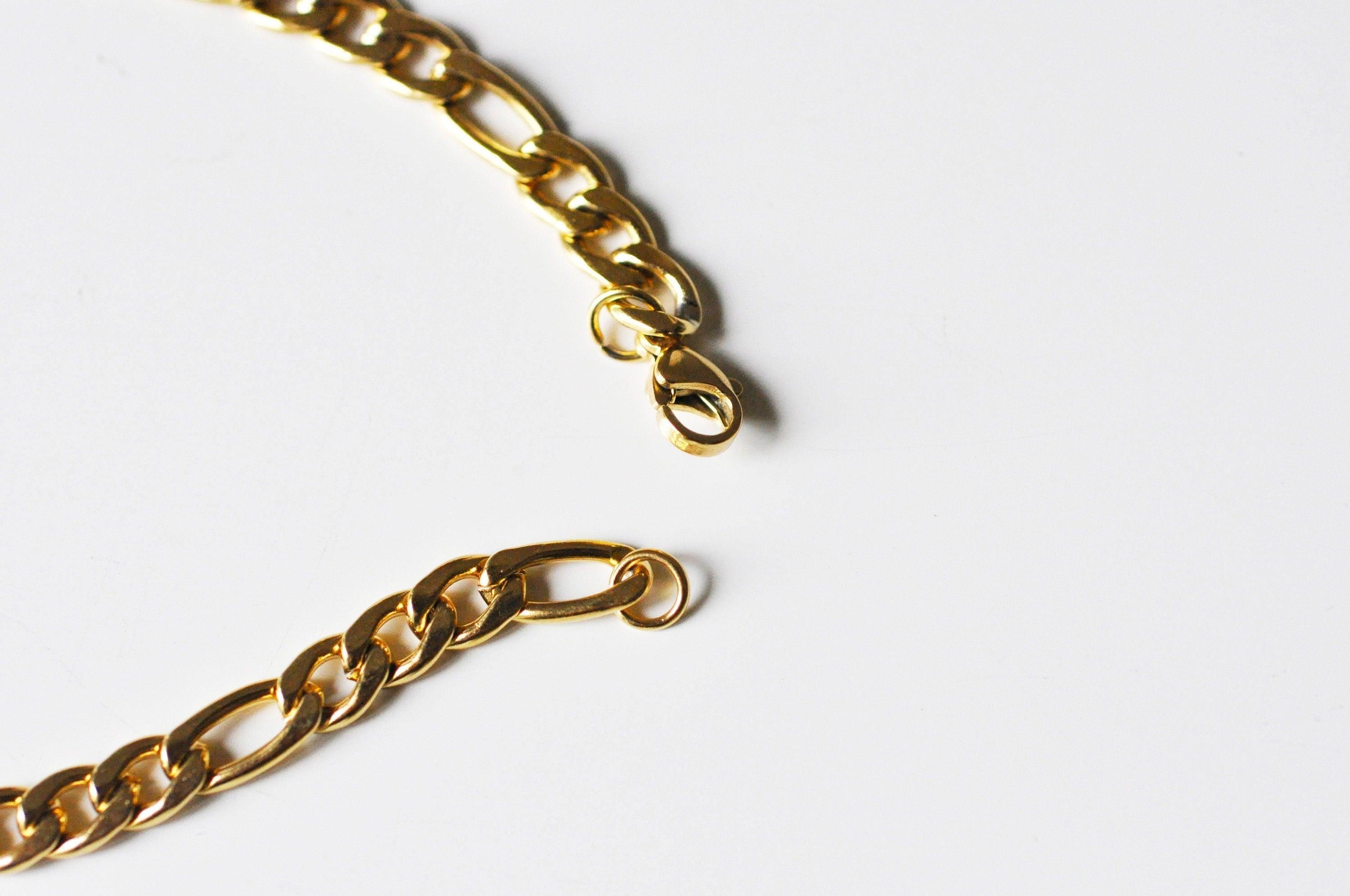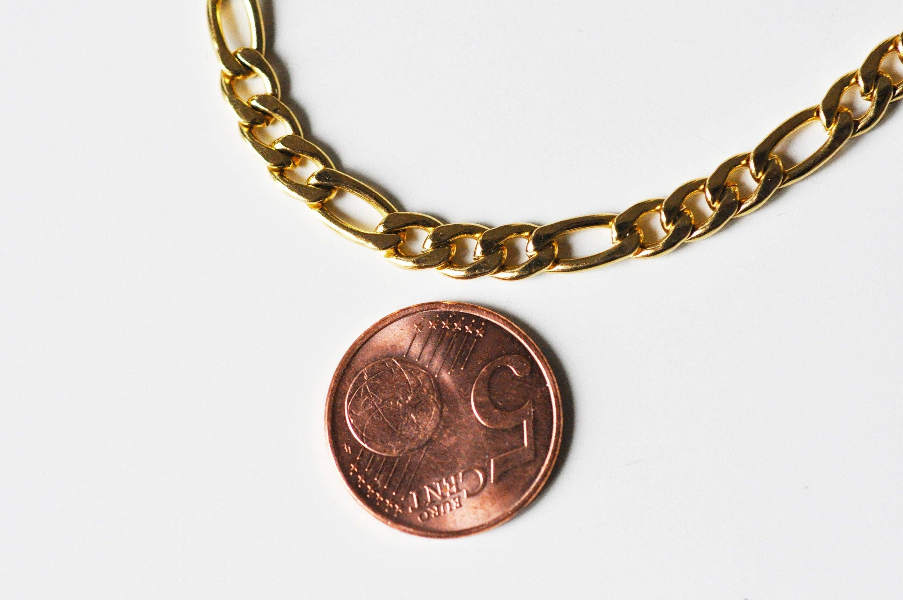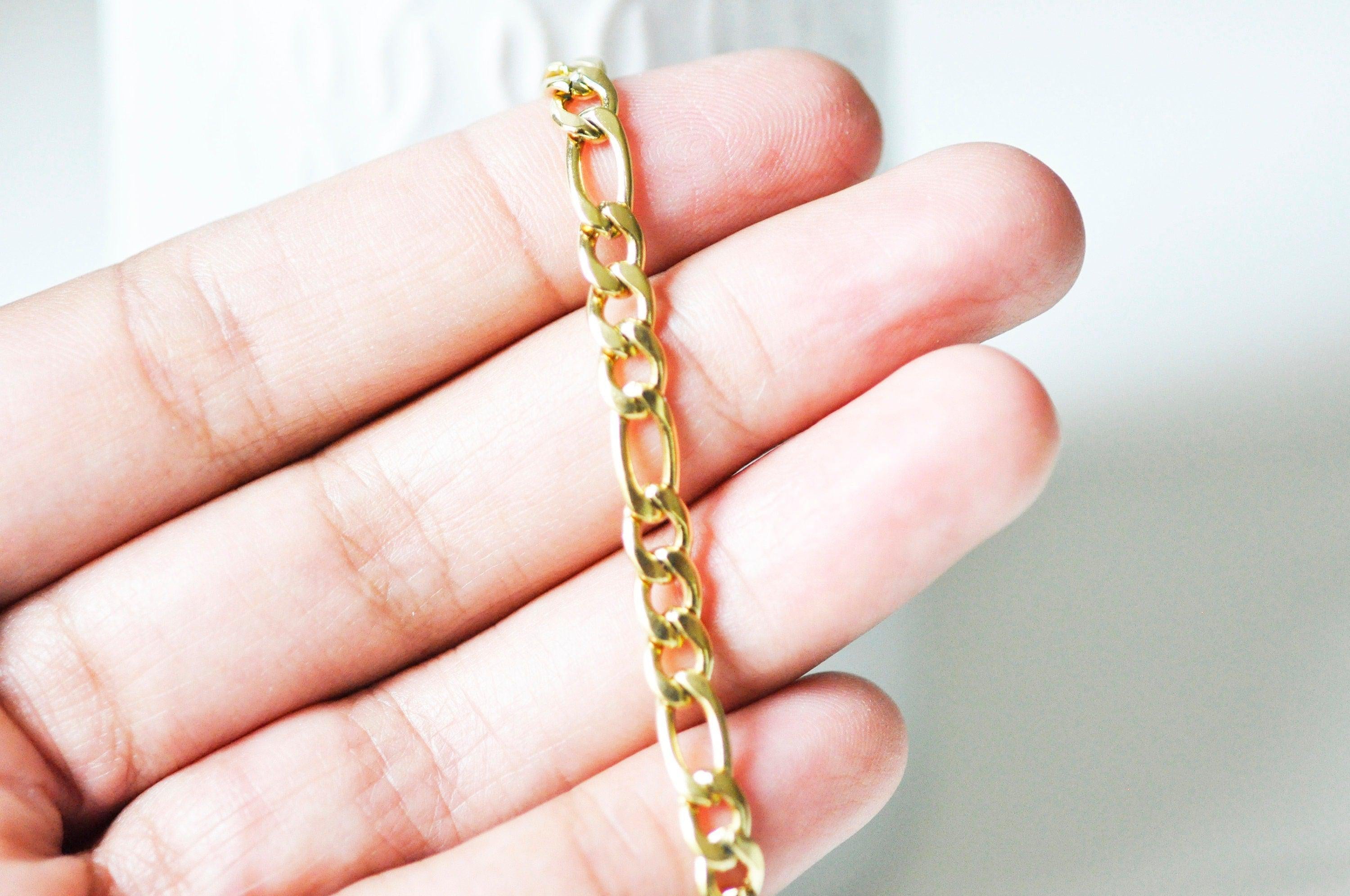 Pulsera grande de malla figaro, acero bañado en oro de 14k, creación de joyas, pulsera de acero inoxidable bañada en oro, sin níquel, 20cm