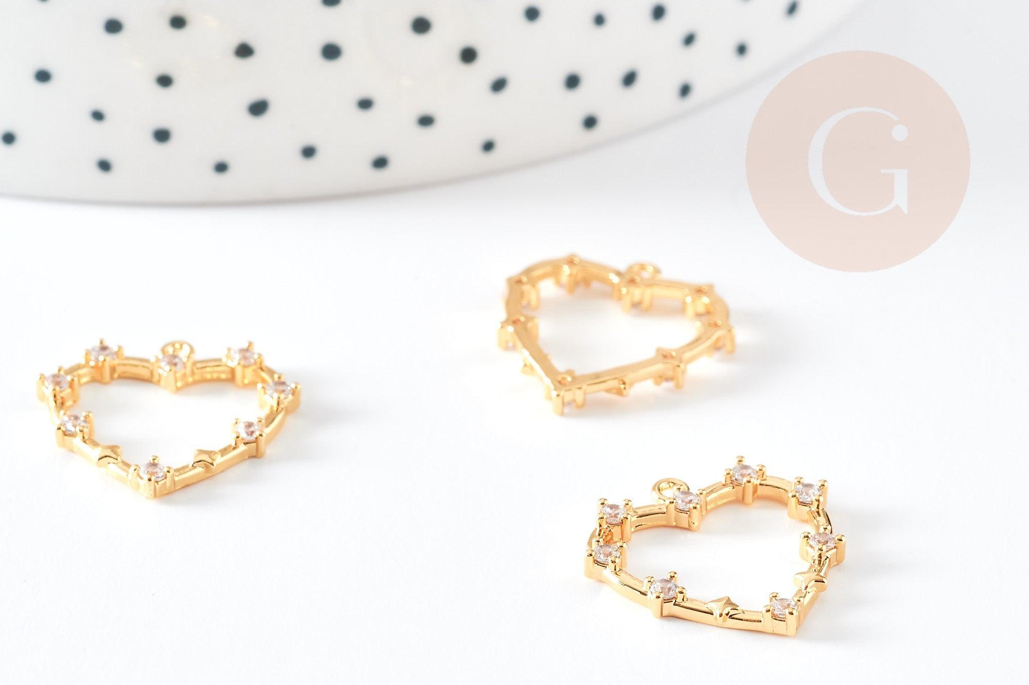Charm corazón de latón oro cristal 18k, sin níquel, cruz de joyería, creación de joyas, colgante amor, colgante circonita blanca, 19mm, x1 G3591