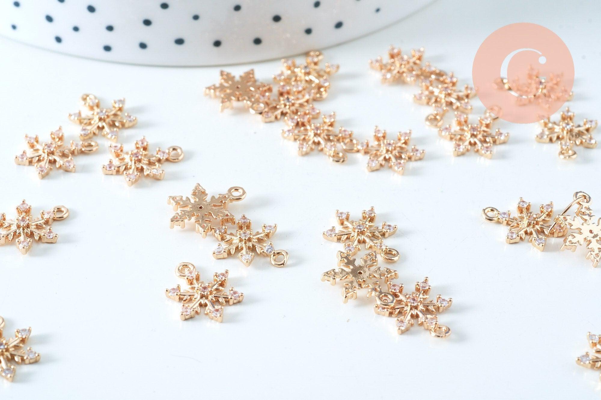 Para crear magníficos collares, pendientes y pulseras, adopta este lindo colgante de copo de nieve en latón bañado en oro de 18 quilates , decorado con pequeñas circonitas blancas brillantes.