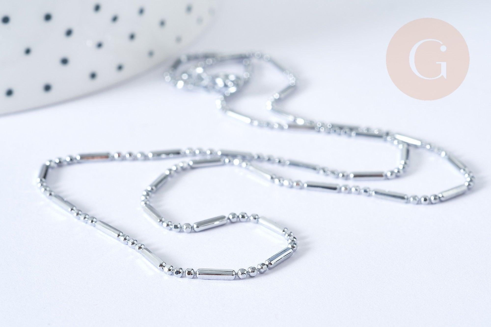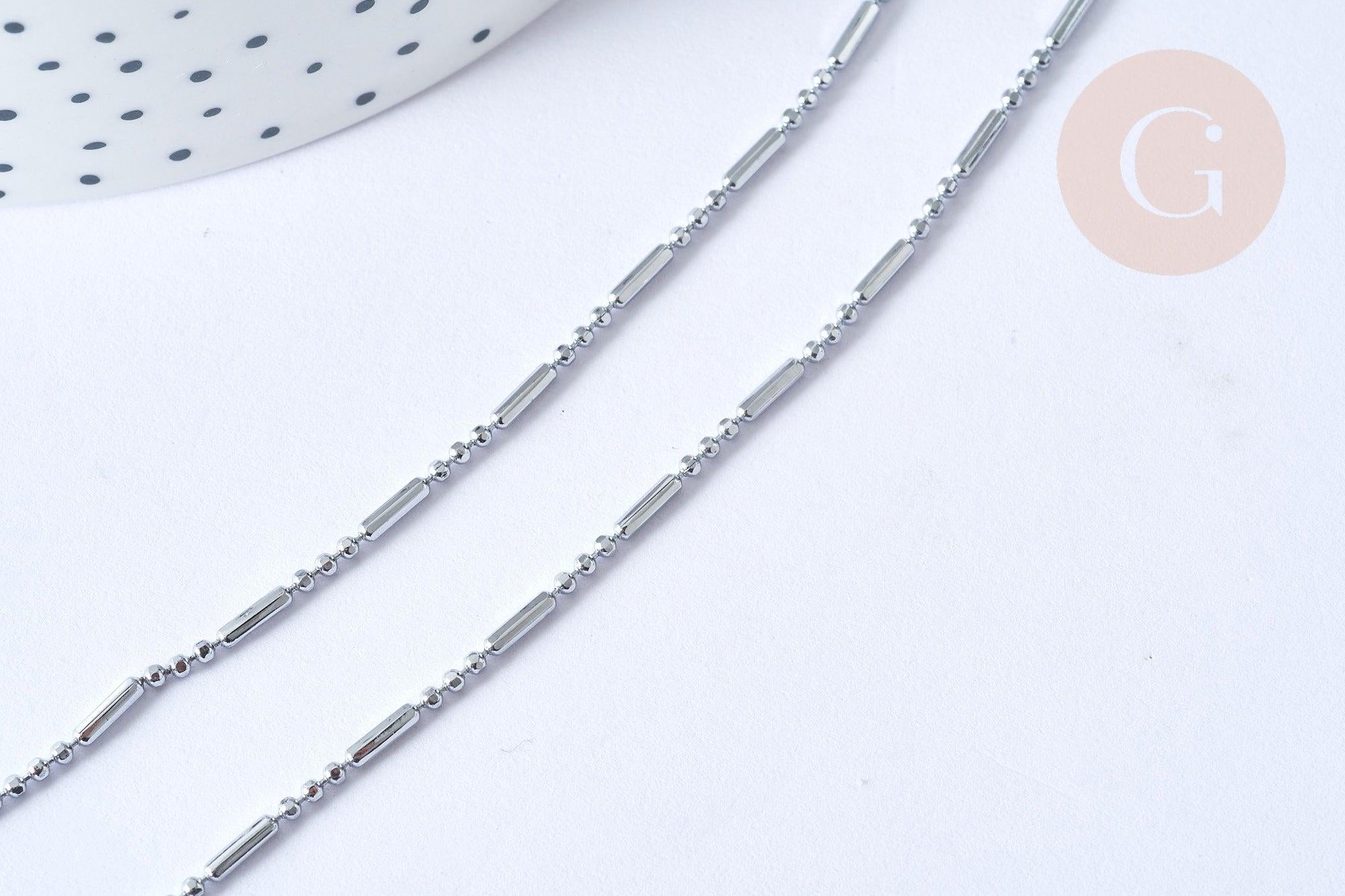 Cadena de bolas de bambú acero inoxidable 304 plata 45,7cm, cadena completa, 45,7cm, x1 G8021