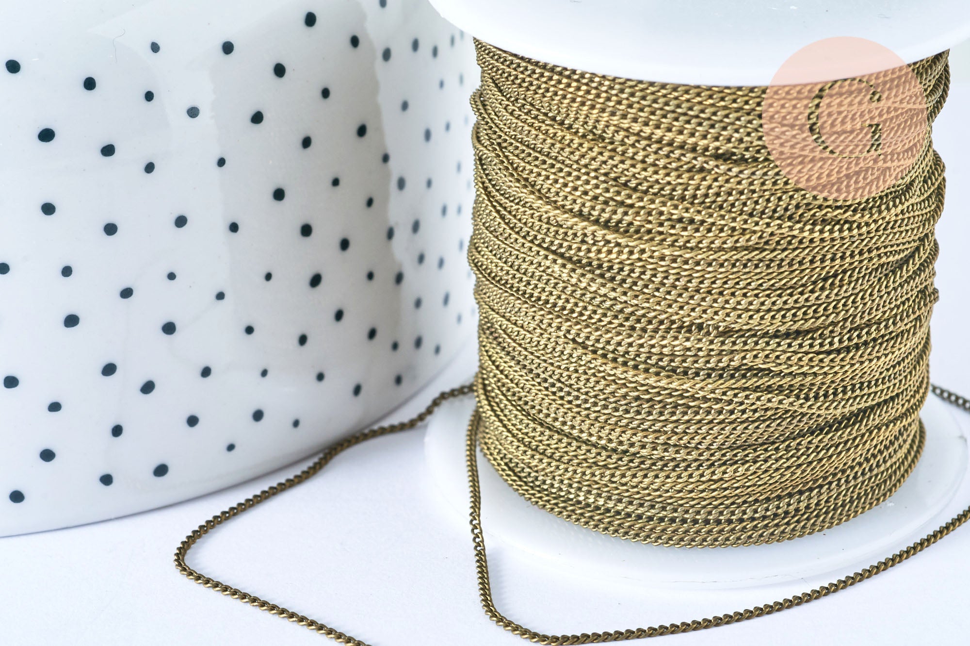 Cadena plana de latón bronce 1,5 mm, cadena de joyería de bronce, cadena al por mayor, carrete de 92 metros G6937