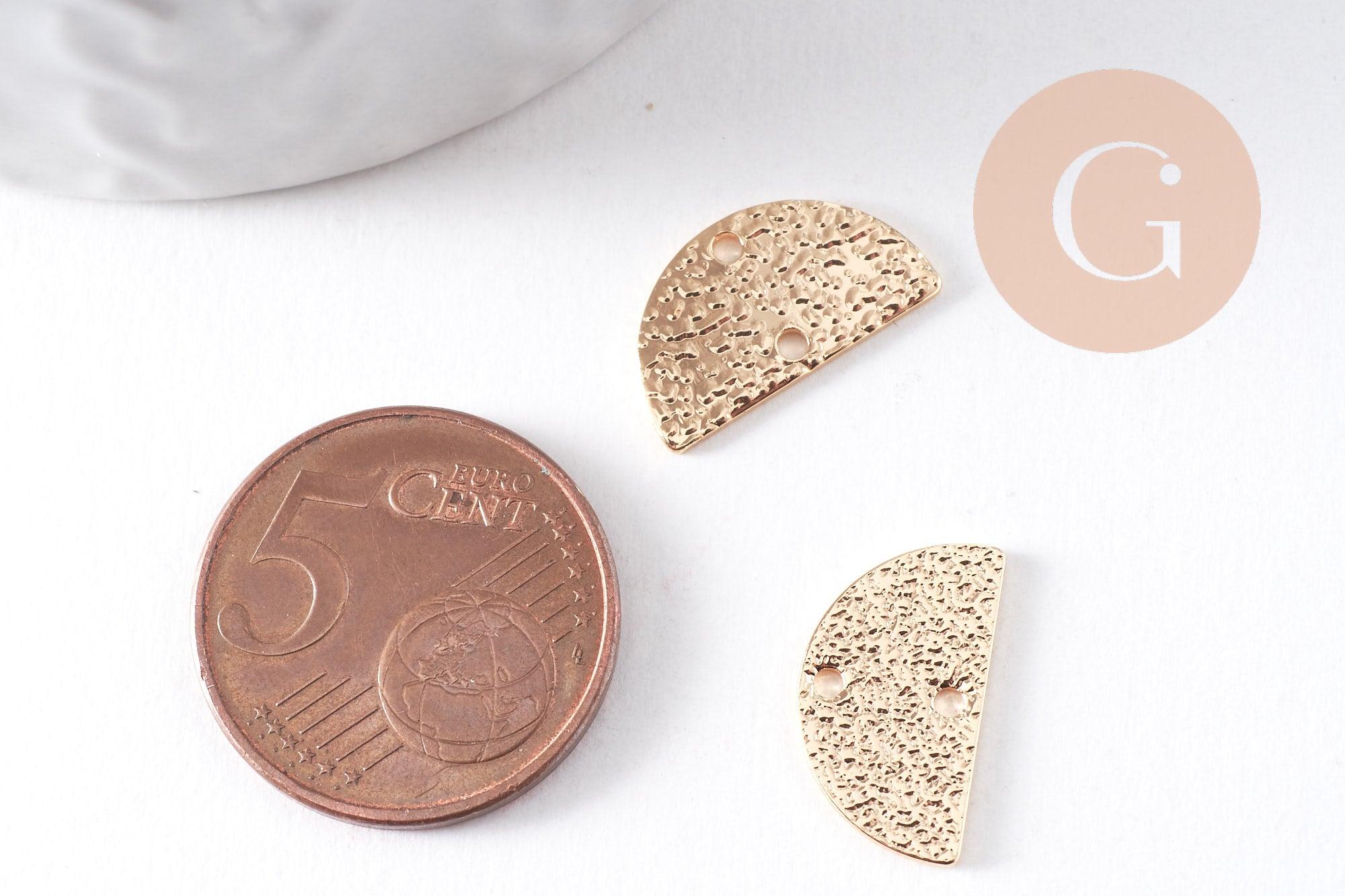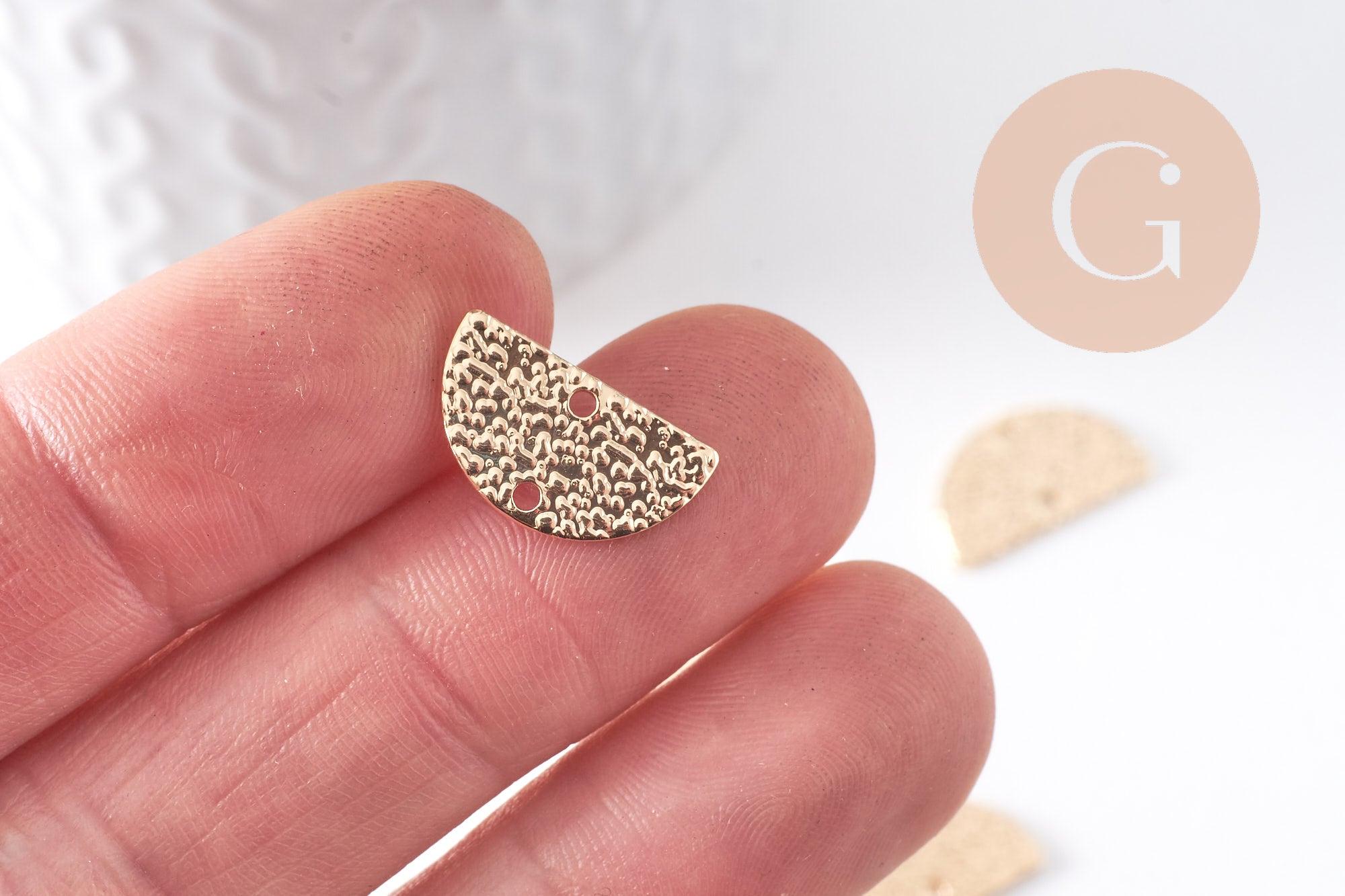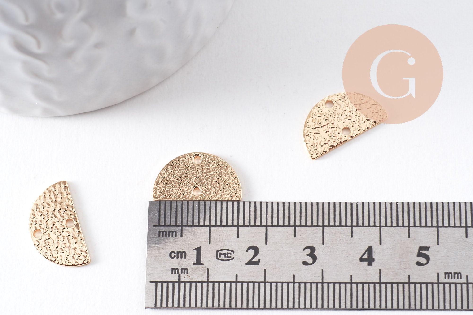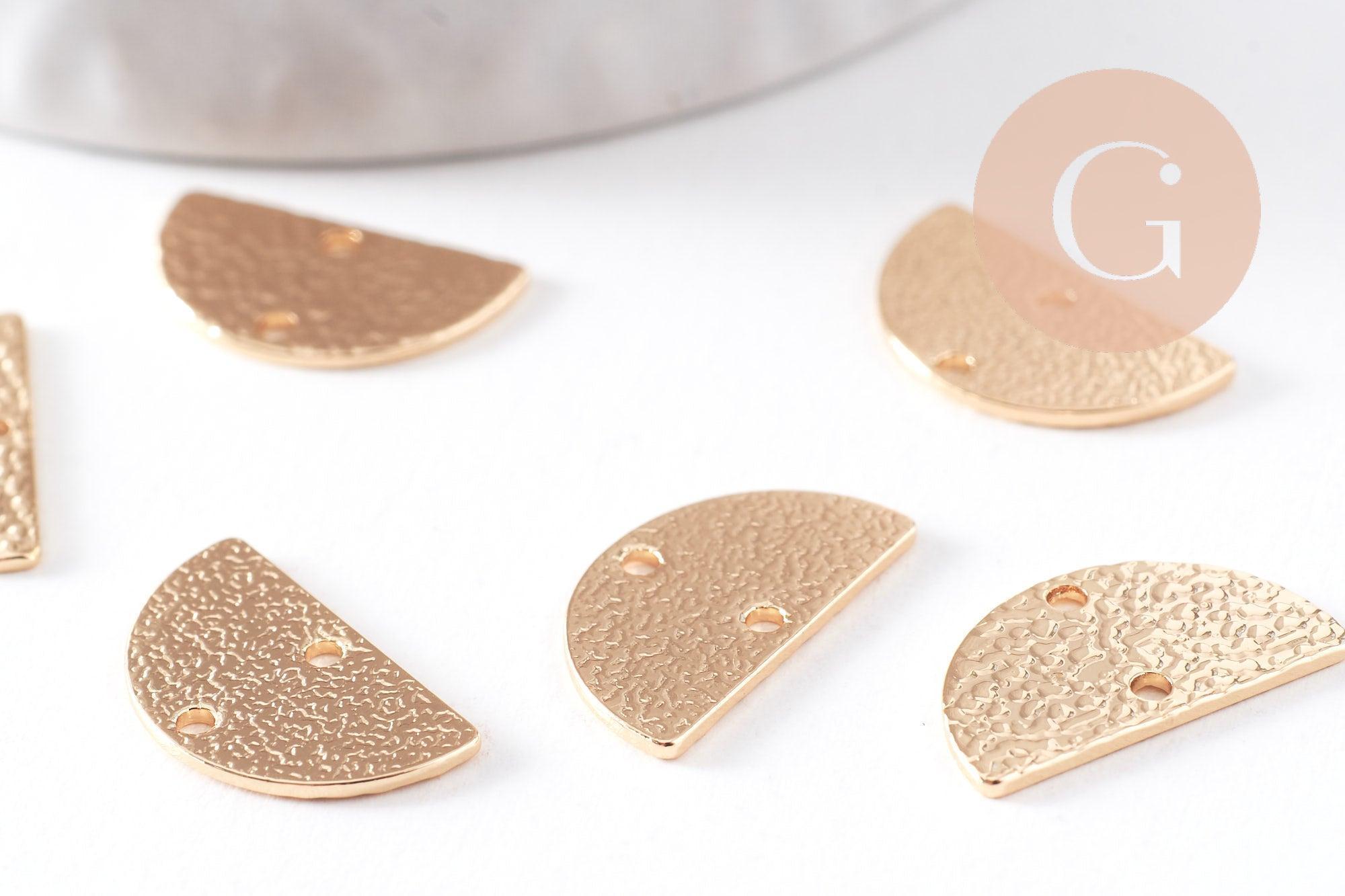 Aporta un toque moderno y refinado a tus creaciones con estos conectores de medio círculo texturizados en latón bañado en oro de 18 quilates . Su diseño geométrico y acabado cepillado les confieren un estilo minimalista y actual, perfecto para joyas elegantes y originales.