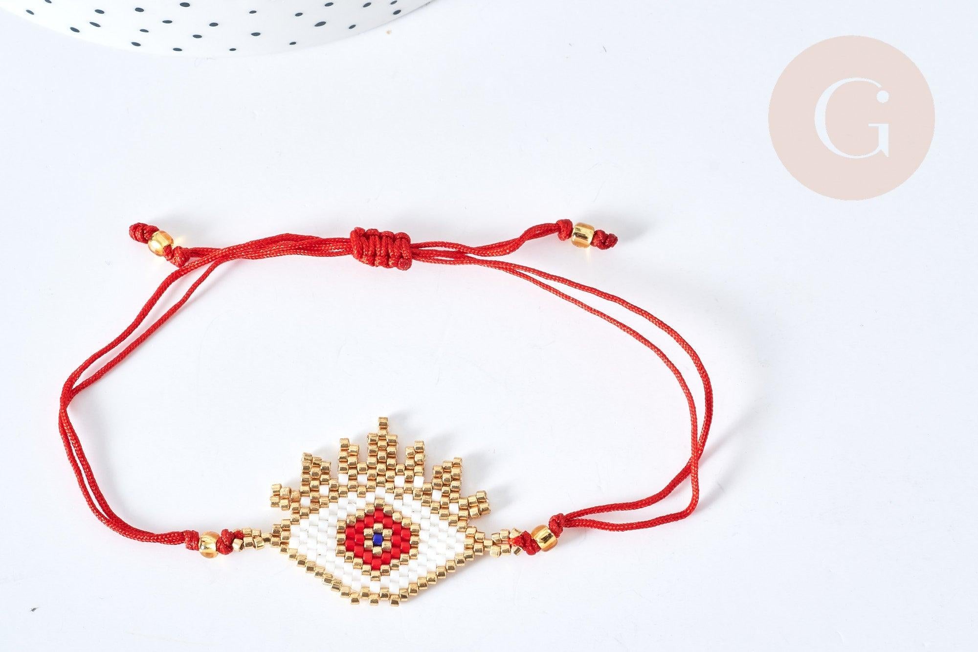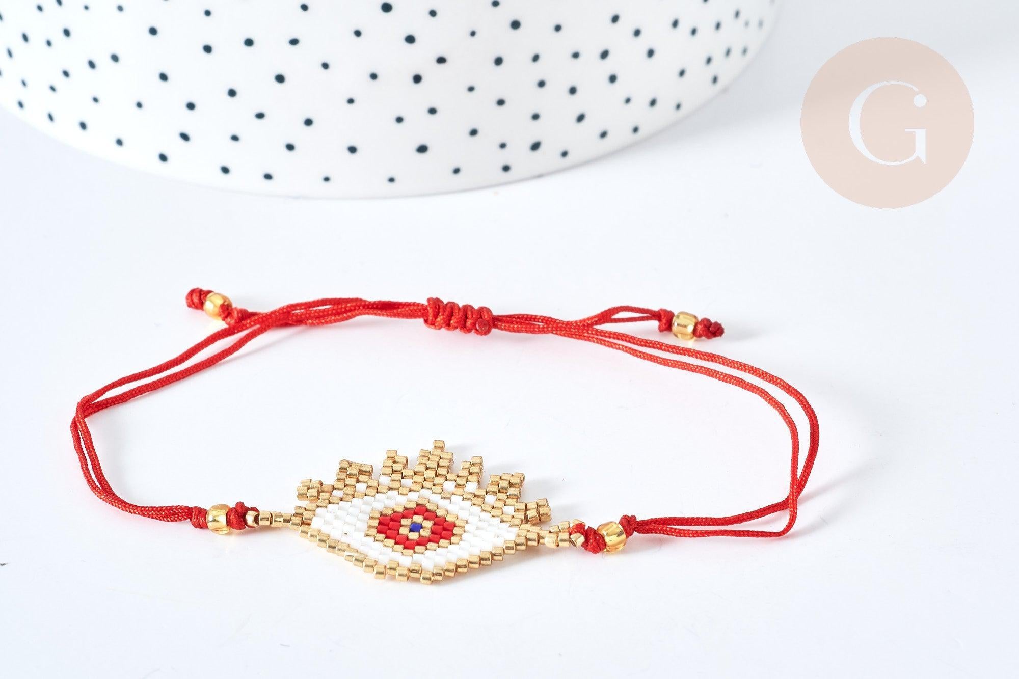 Pulsera ajustable con diamante de ojo malvado rojo y cordón de nailon dorado de 28 cm, cuentas de semillas tejidas, joyería de la suerte para ofrecer, pulsera de la amistad, x1 (G7677)