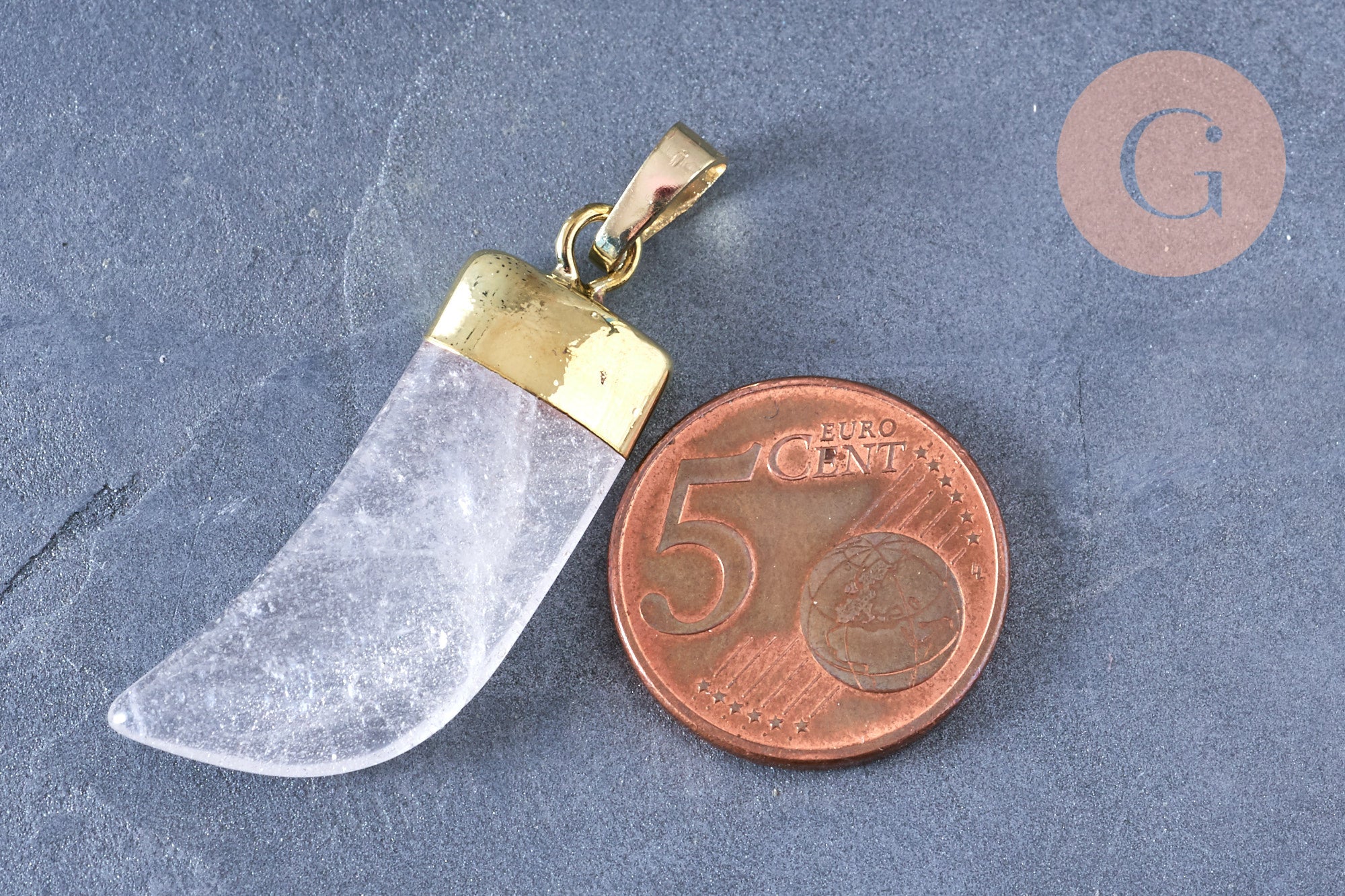 Colgante de cuerno de cristal de roca de 37 mm, colgante de joyería, colgante de cuarzo natural, colgante de piedra, x1 (G6660)