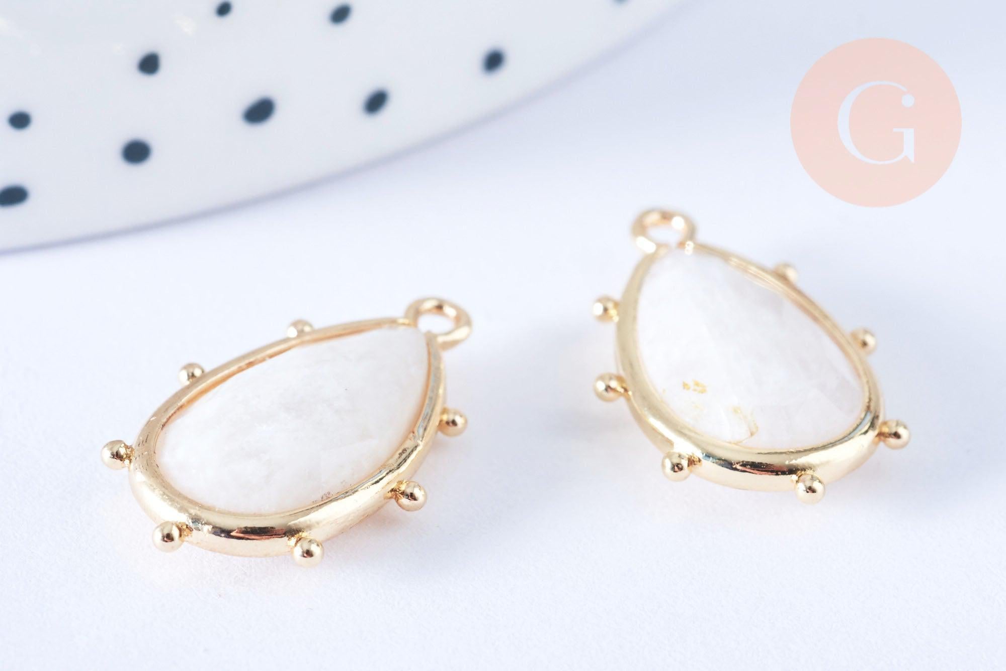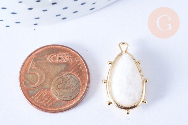 Colgante de piedra lunar de latón dorado 22,5 mm, colgante de joyería de piedra, piedra lunar natural, x1, G6649