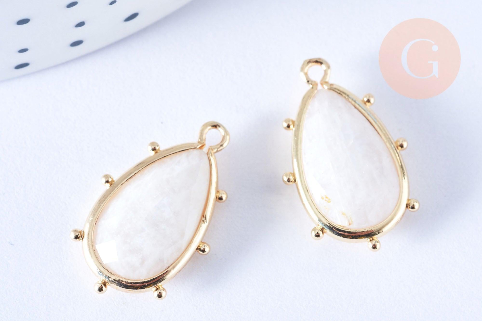 Déjate seducir por este pequeño colgante en forma de gota de piedra lunar natural con magníficos reflejos, sobre su soporte de latón dorado.