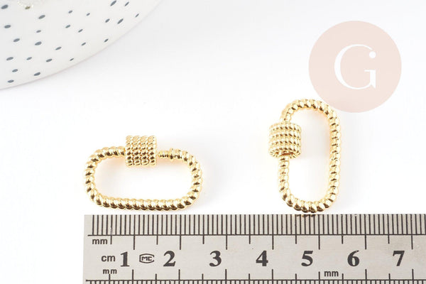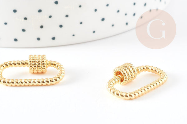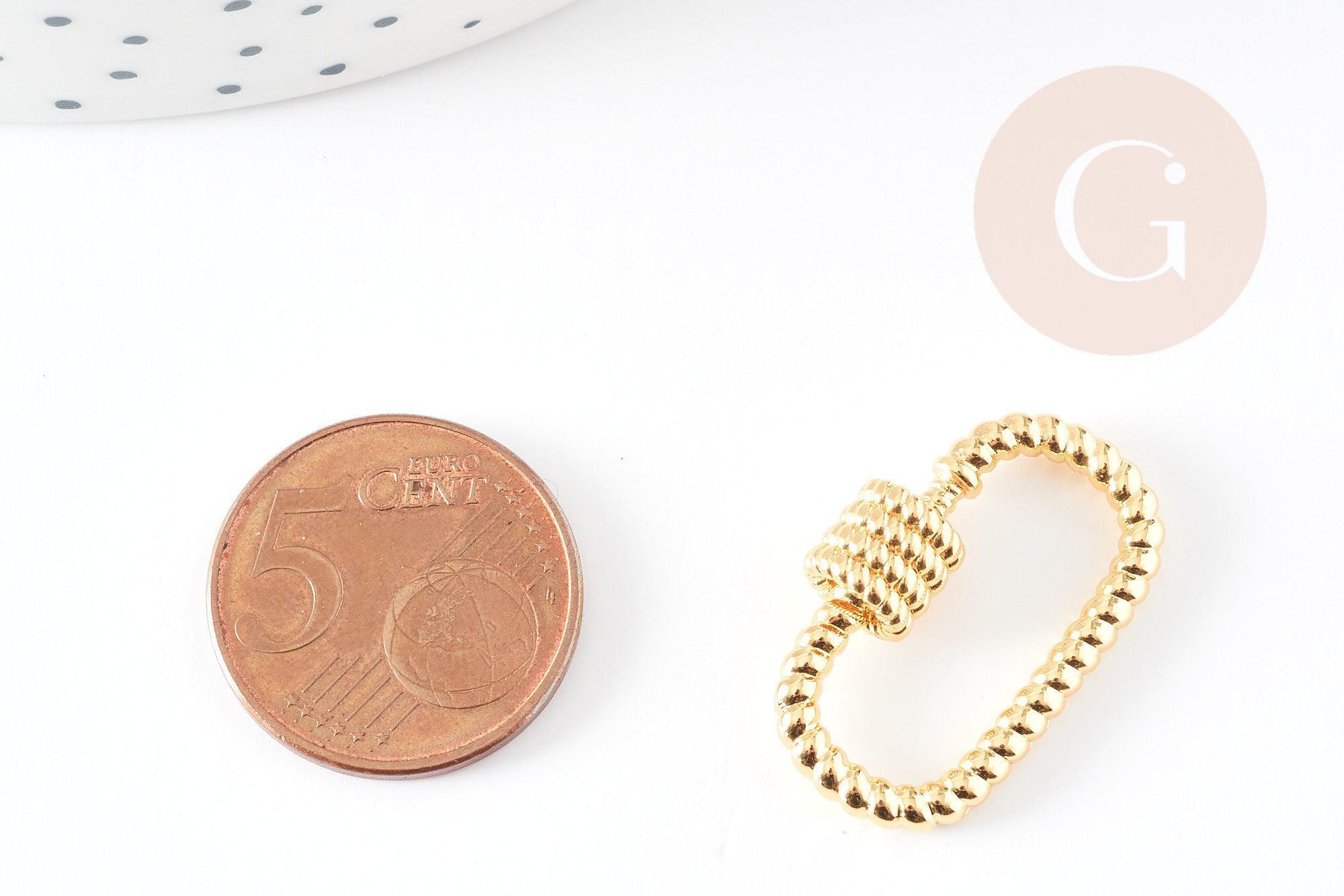 Dale personalidad a tus creaciones con este gran cierre de rosca de latón chapado en oro . Su elegante diseño y acabado de calidad lo convierten en la pieza central de tus joyas modernas, duraderas y fáciles de llevar.