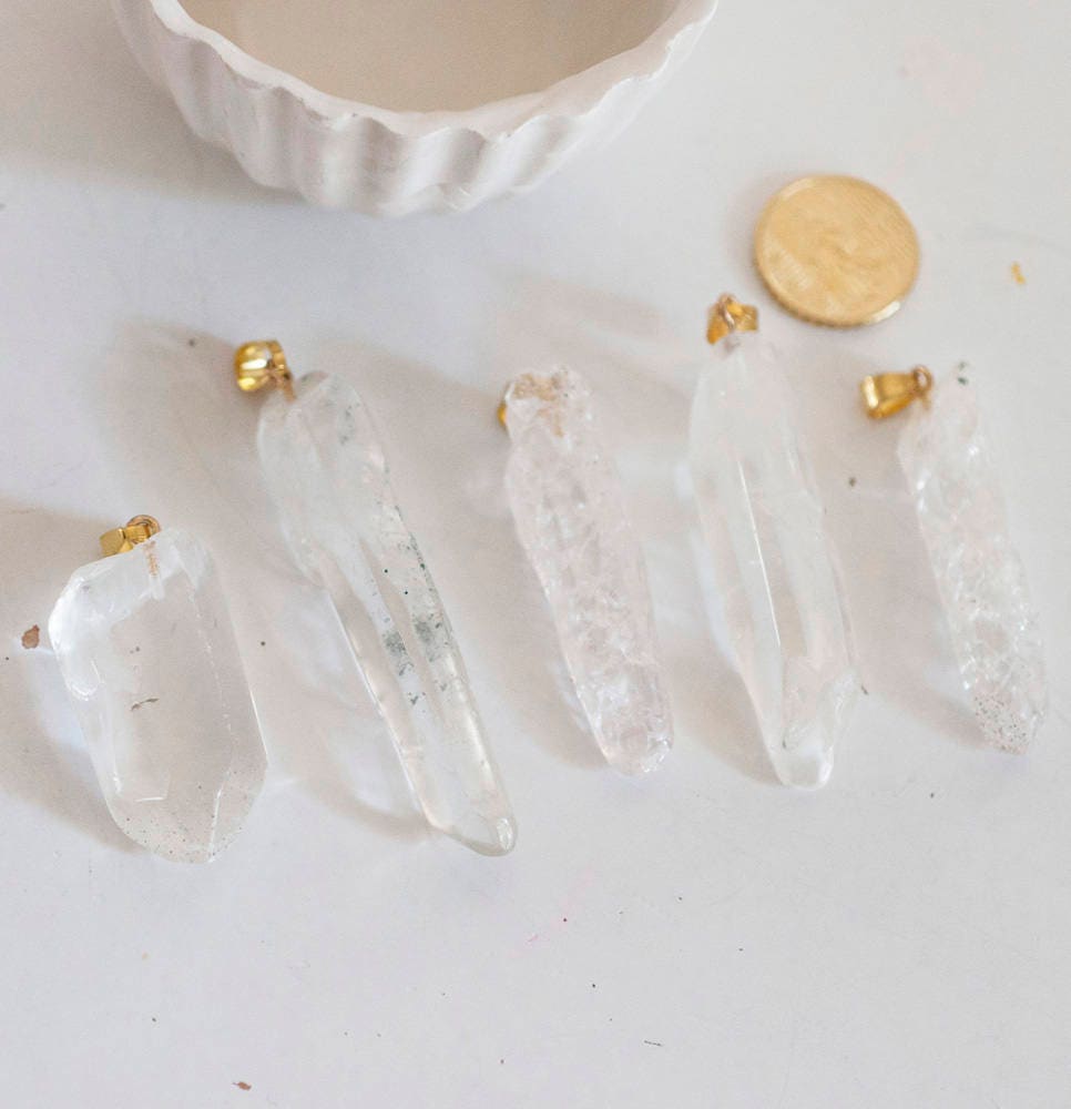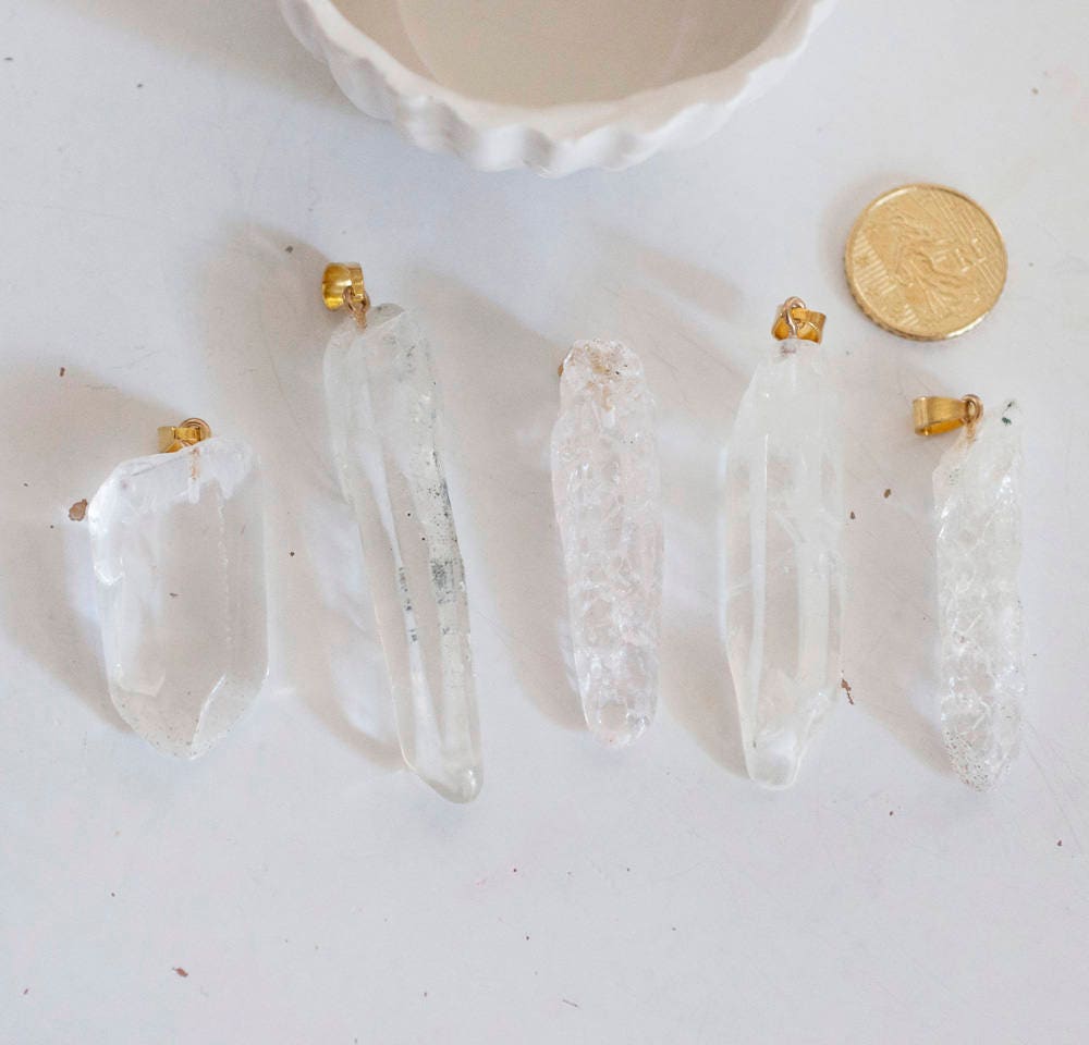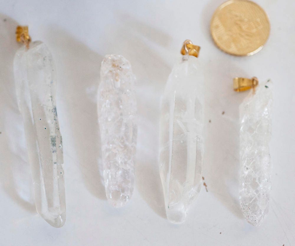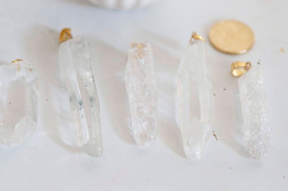 Colgante de punta de cristal agrietado transparente de oro EP, suministros creativos, colgante de piedra, cristal natural, colgante de cristal, G2803