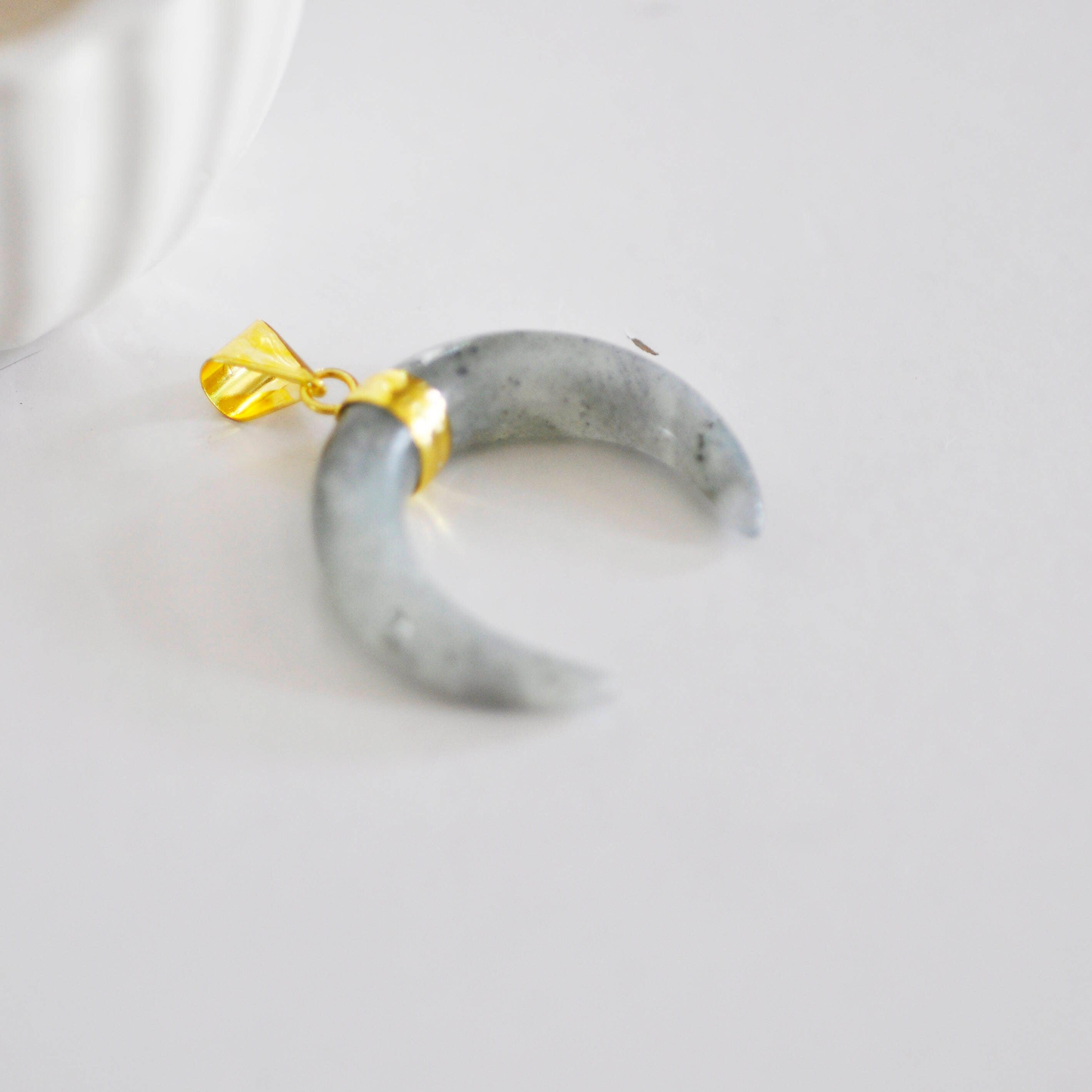 Colgante Luna de Labradorita, Colgante para joyería, colgante de piedra, piedra natural, colgante gris Enamórate de esta luna de labradorita natural para crear joyas bohemias chic muy de moda. Ancho: 32 mm Longitud 35mm Espesor: 10 mm Agujero: 4,5x8mm. Otros...