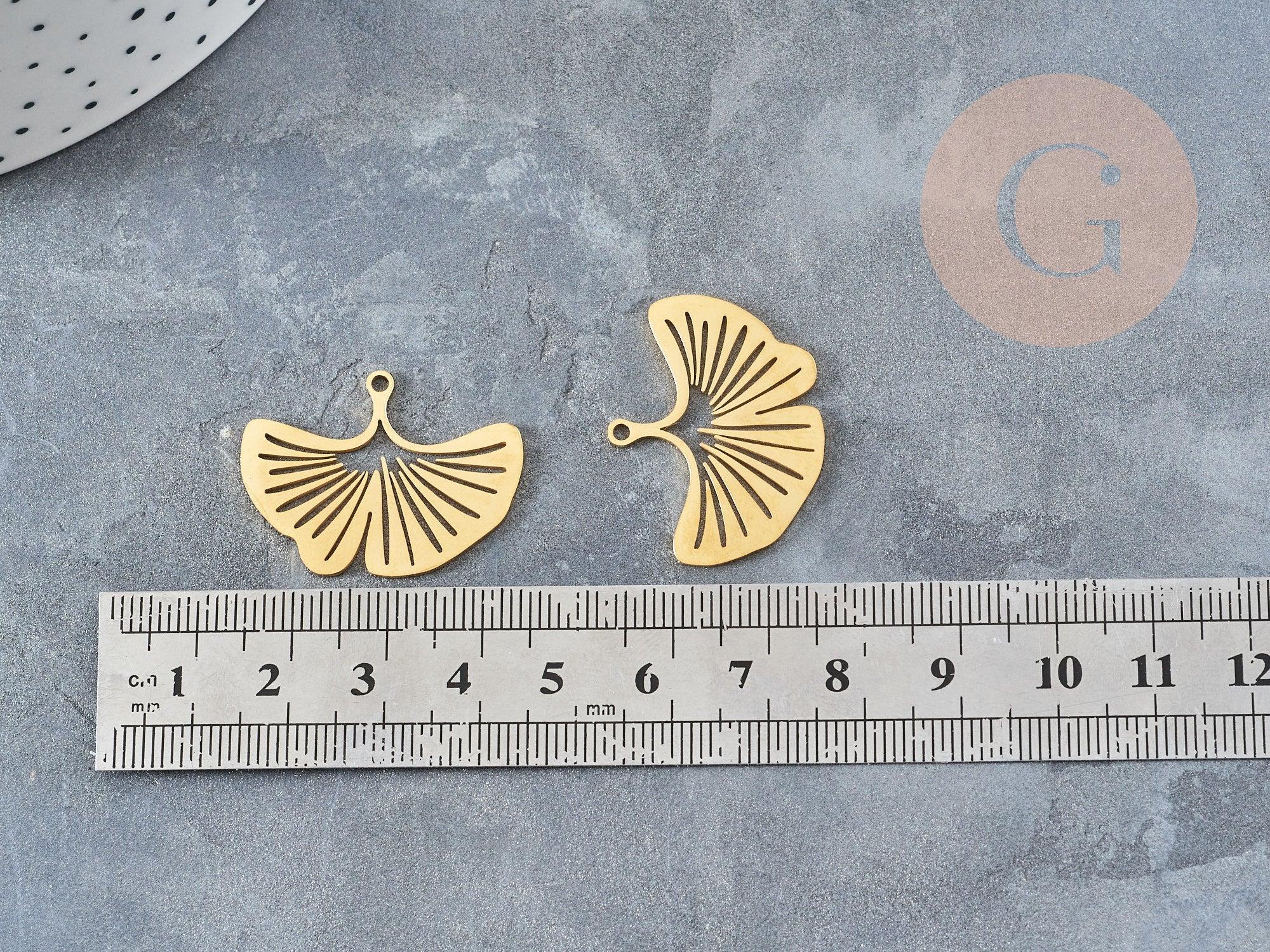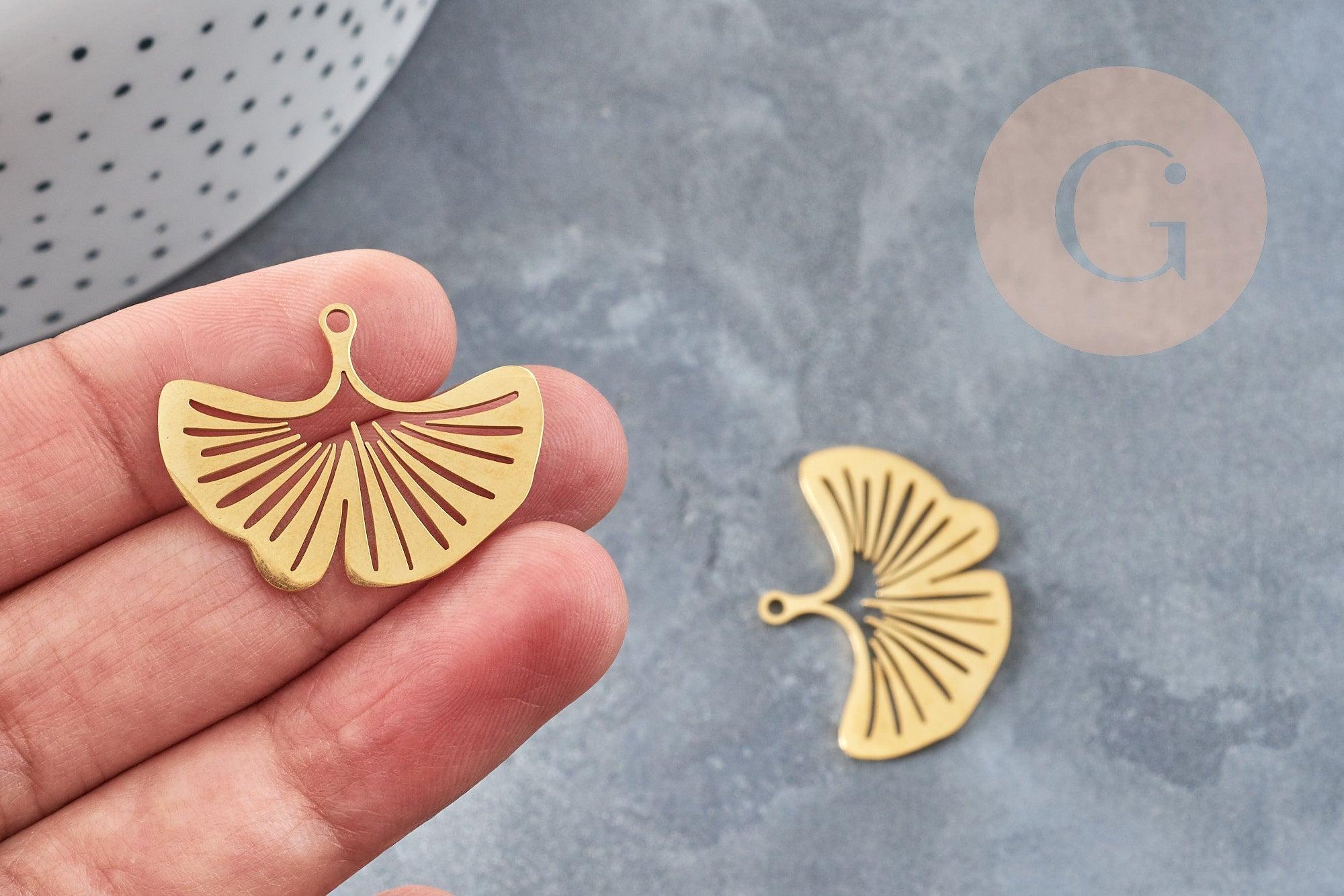 Un colgante de acero bañado en oro con forma de hoja de gingko, un material ideal para realizar tu propia bisutería DIY.