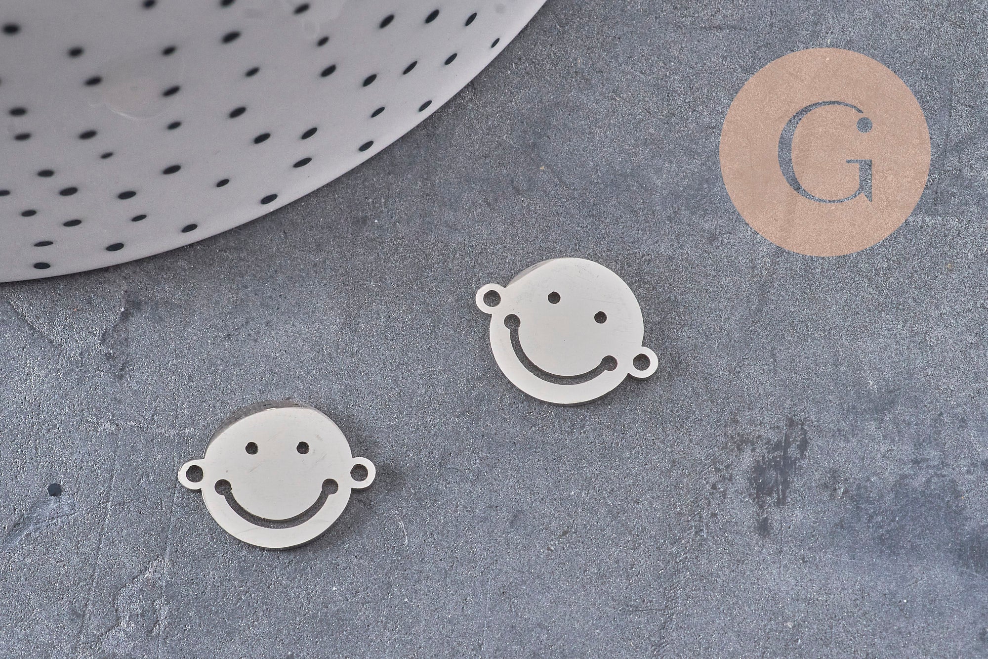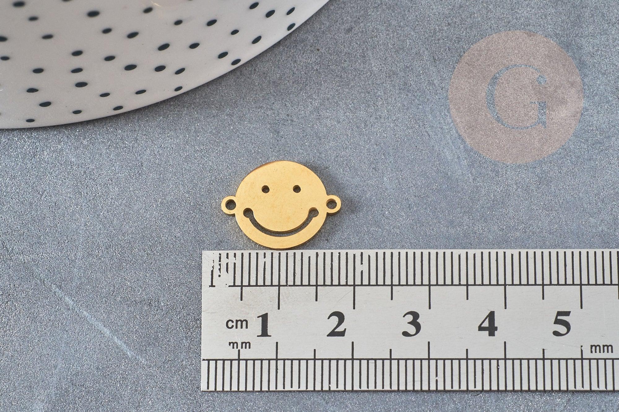 Colgante de cara sonriente, acero inoxidable 201, acabado dorado o platino, 12,5 mm, x1 (G5687)