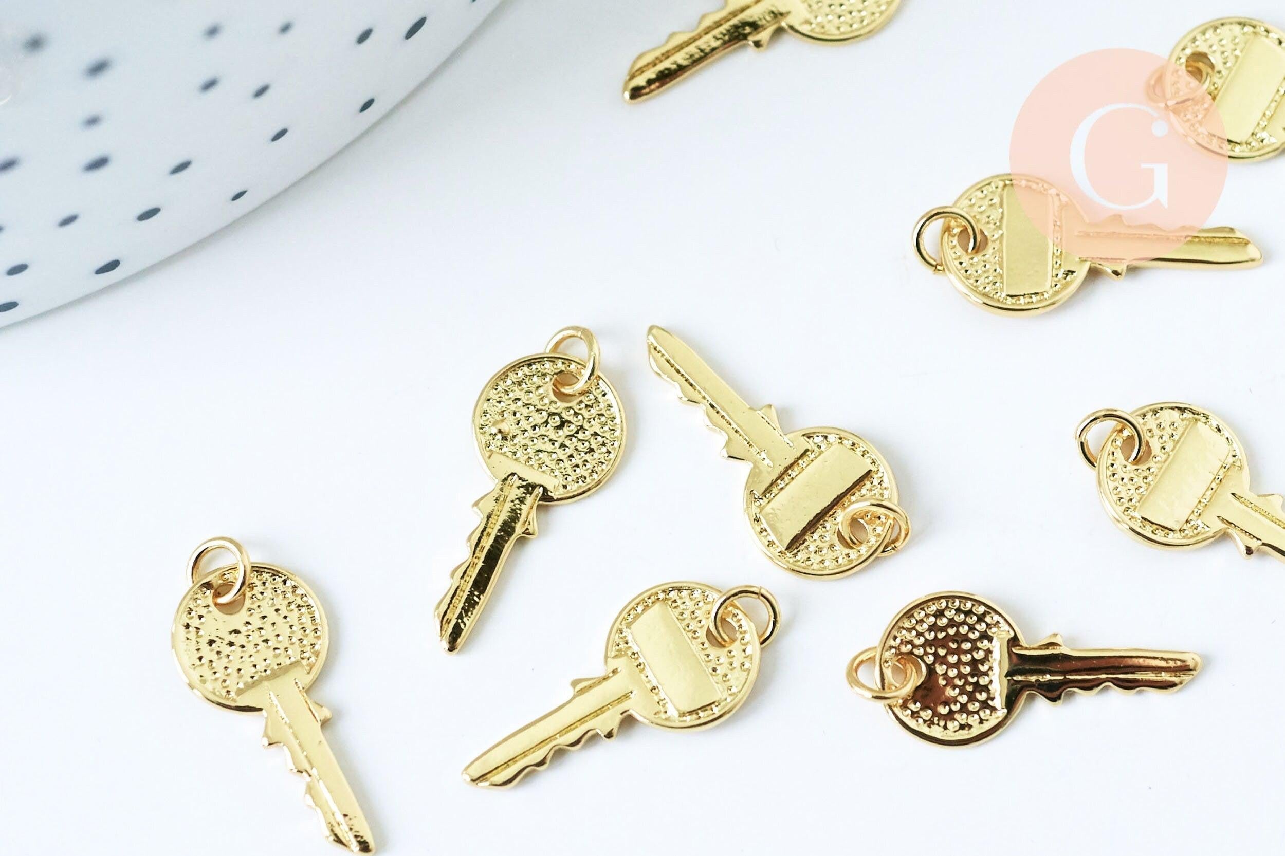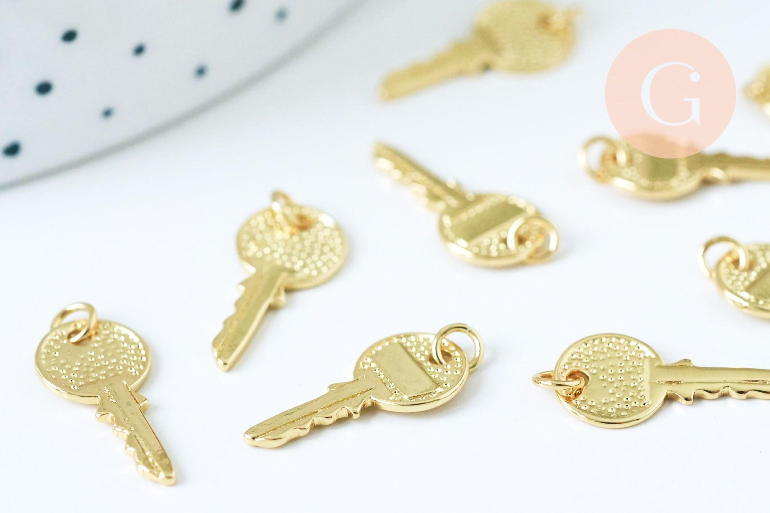 Adopte ahora mismo estos pequeños colgantes en forma de llave de latón dorado para crear sus pequeñas joyas del amor: ideales para crear pendientes, pulseras y collares.