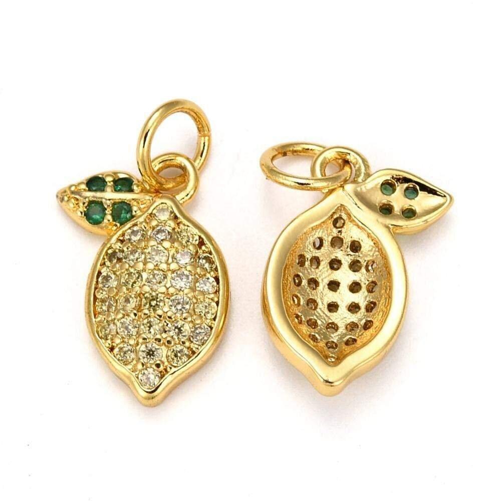 Aporta un toque de brillo y frescura a tus creaciones con este colgante de limón en oro de 18 quilates adornado con brillantes circonitas . Su diseño afrutado y refinado es perfecto para la joyería de verano o para añadir un toque de diversión y lujo a tus accesorios.