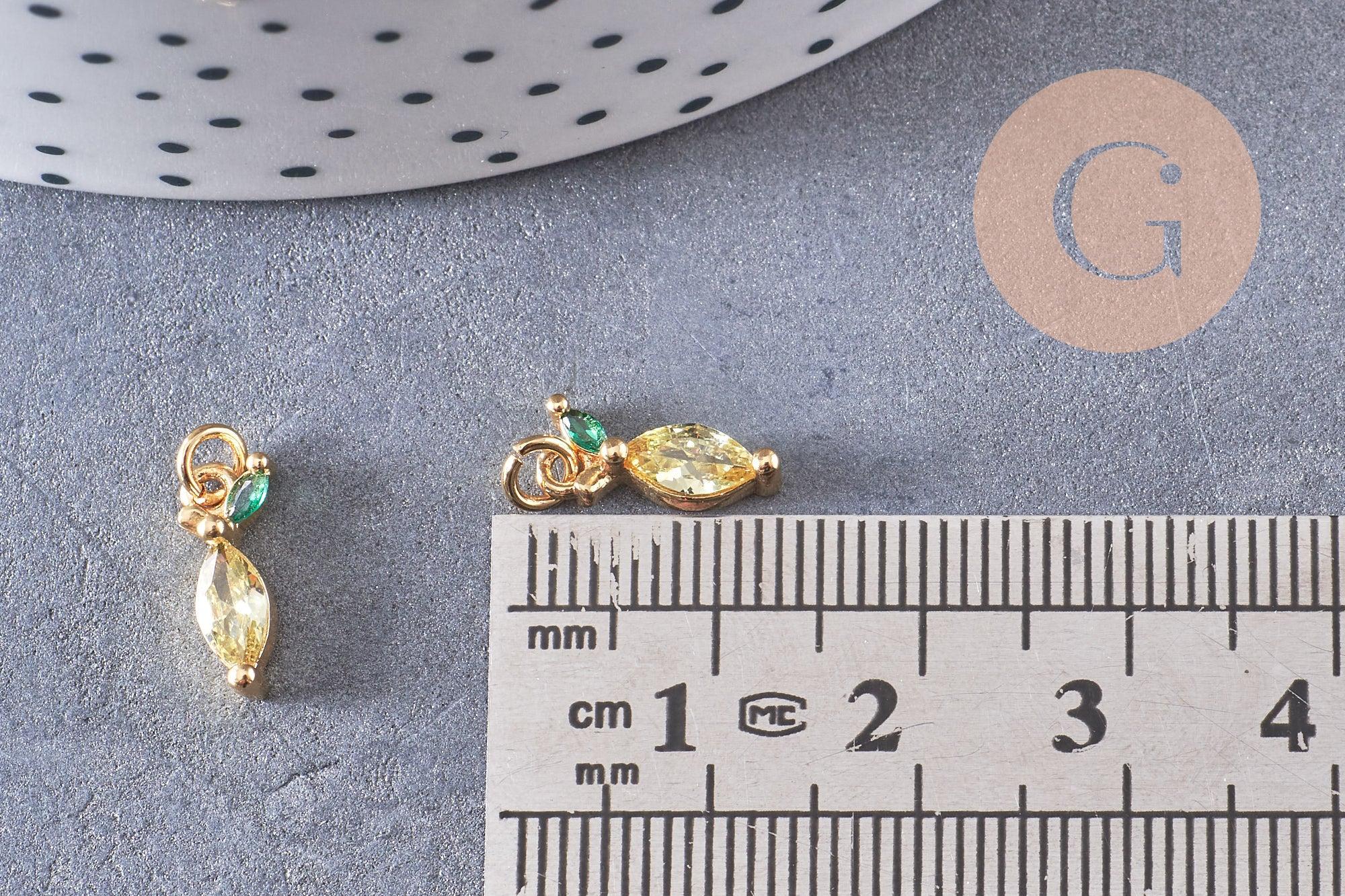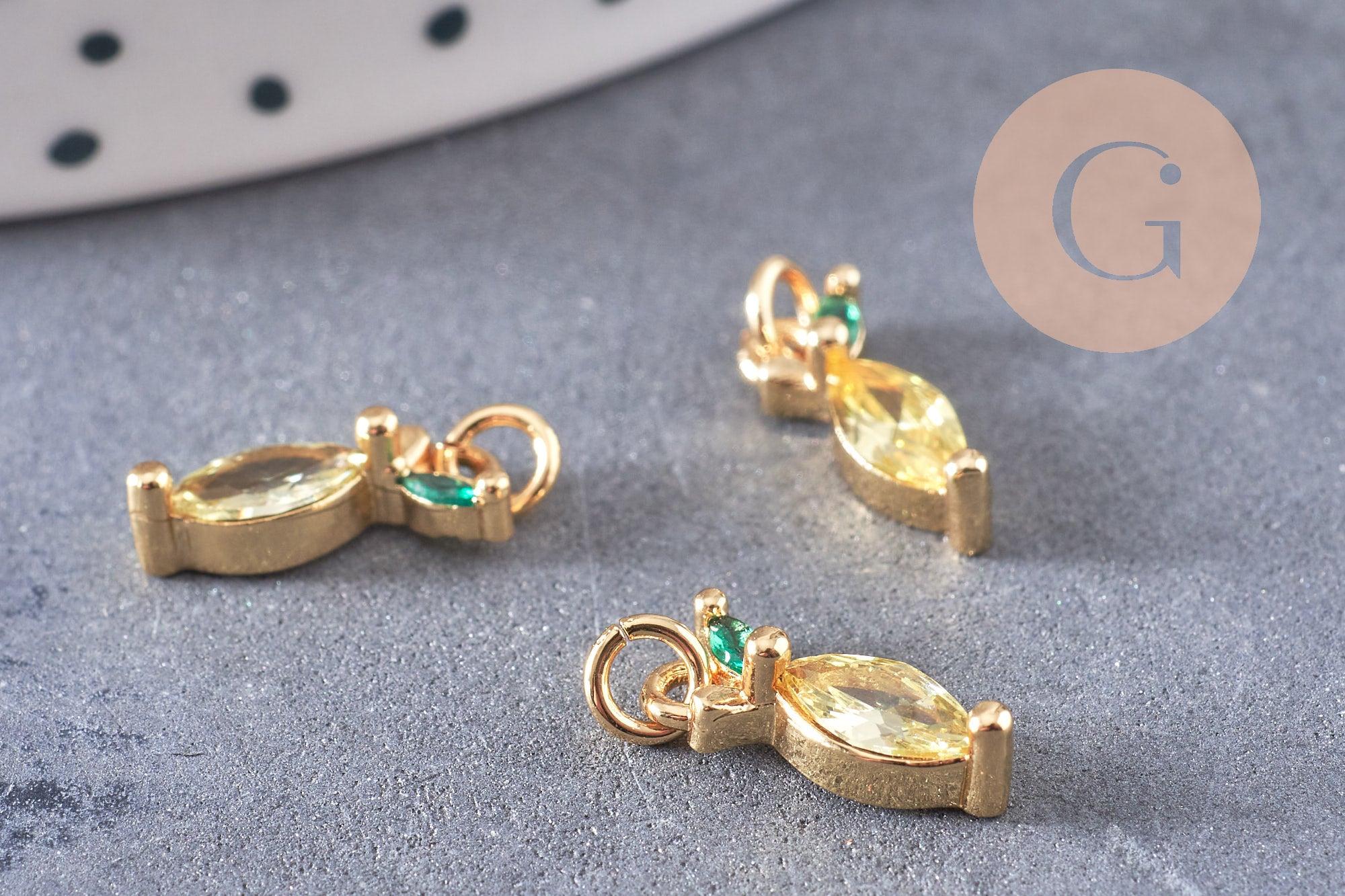 Aporta una nota afrutada y vibrante a tus creaciones con este colgante de limón en latón bañado en oro de 18 quilates , adornado con circonitas brillantes .