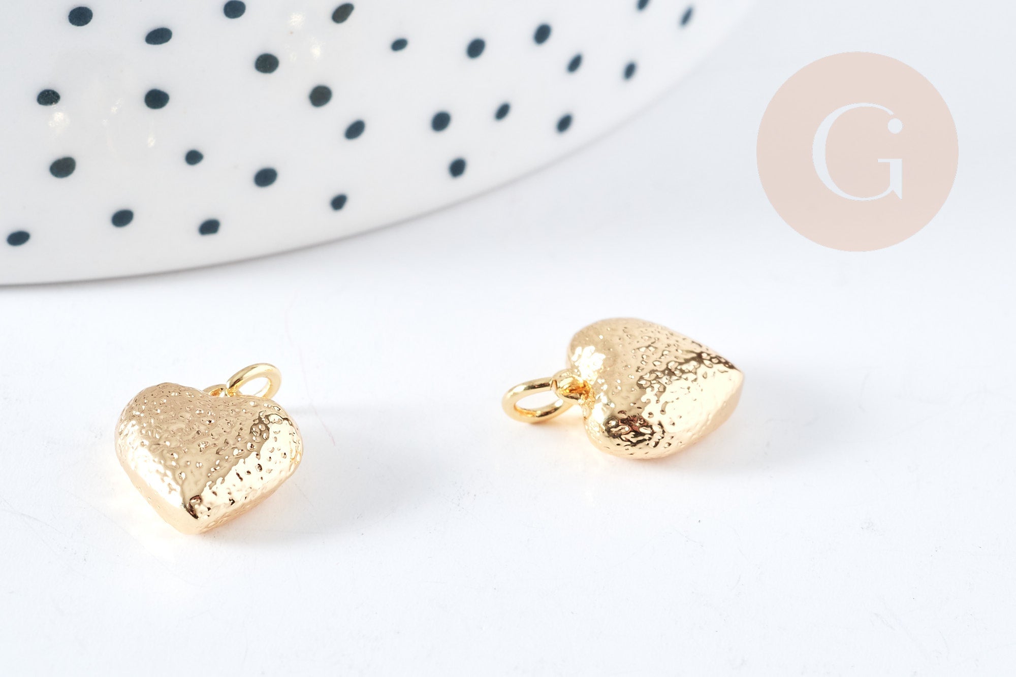 Colgante de corazón texturizado de latón chapado en oro de 18k 11 mm, colgante de creación de joyería dorada, x1 G8775