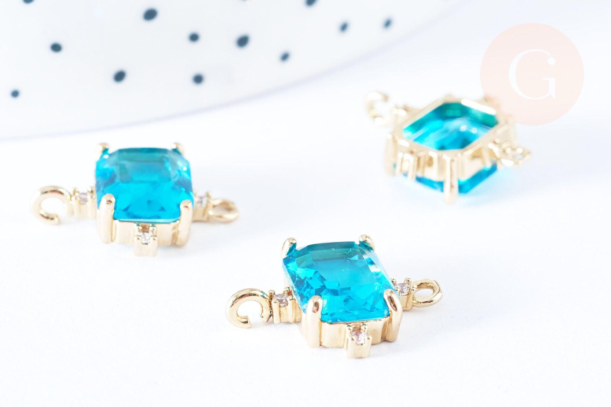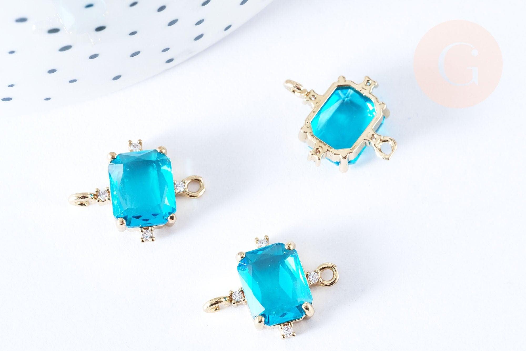 Colgante con conector rectangular de cristal azul transparente en latón bañado en oro de 17,5 mm, colgante para creación de joyas, x1 (G6723)